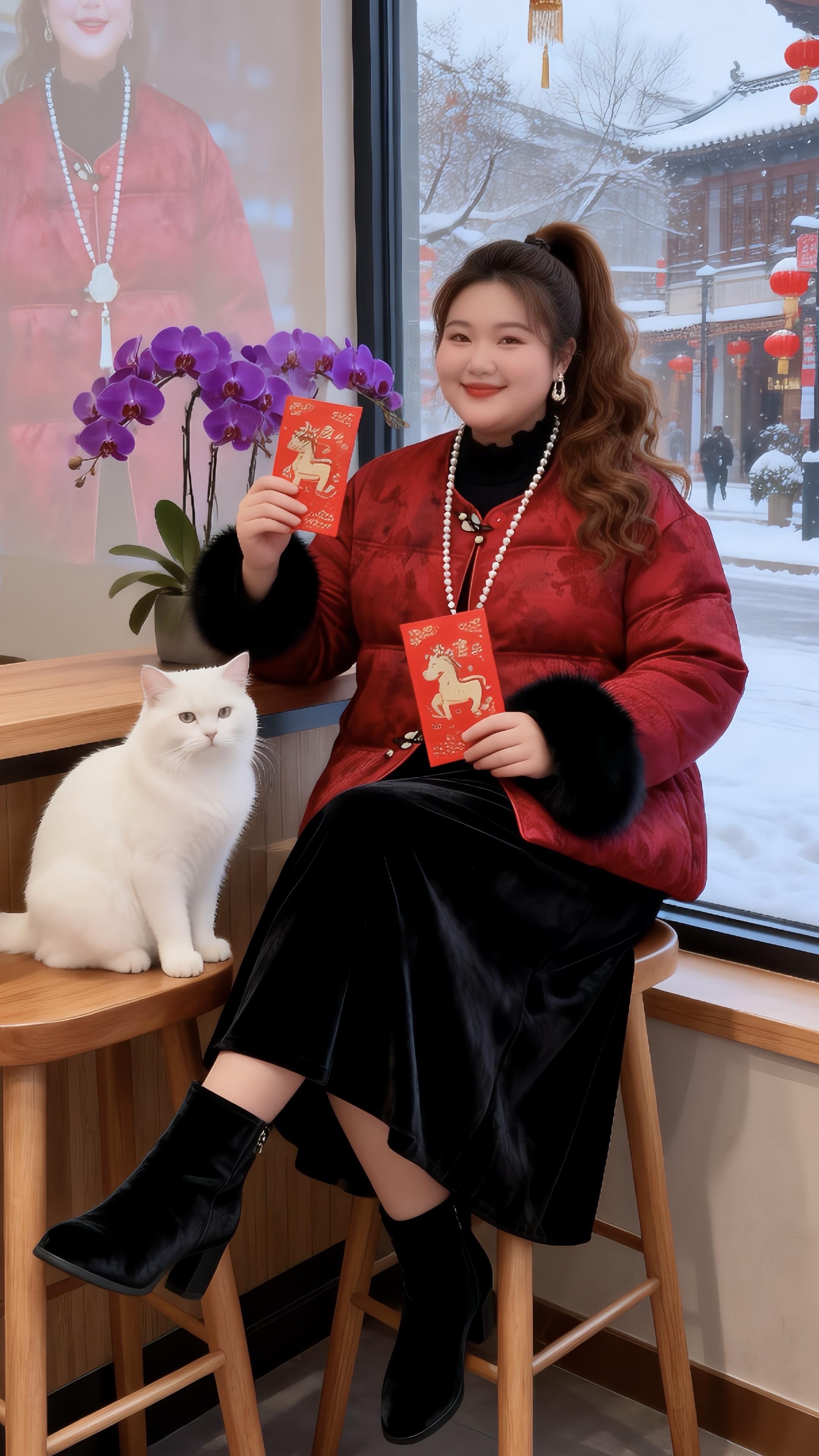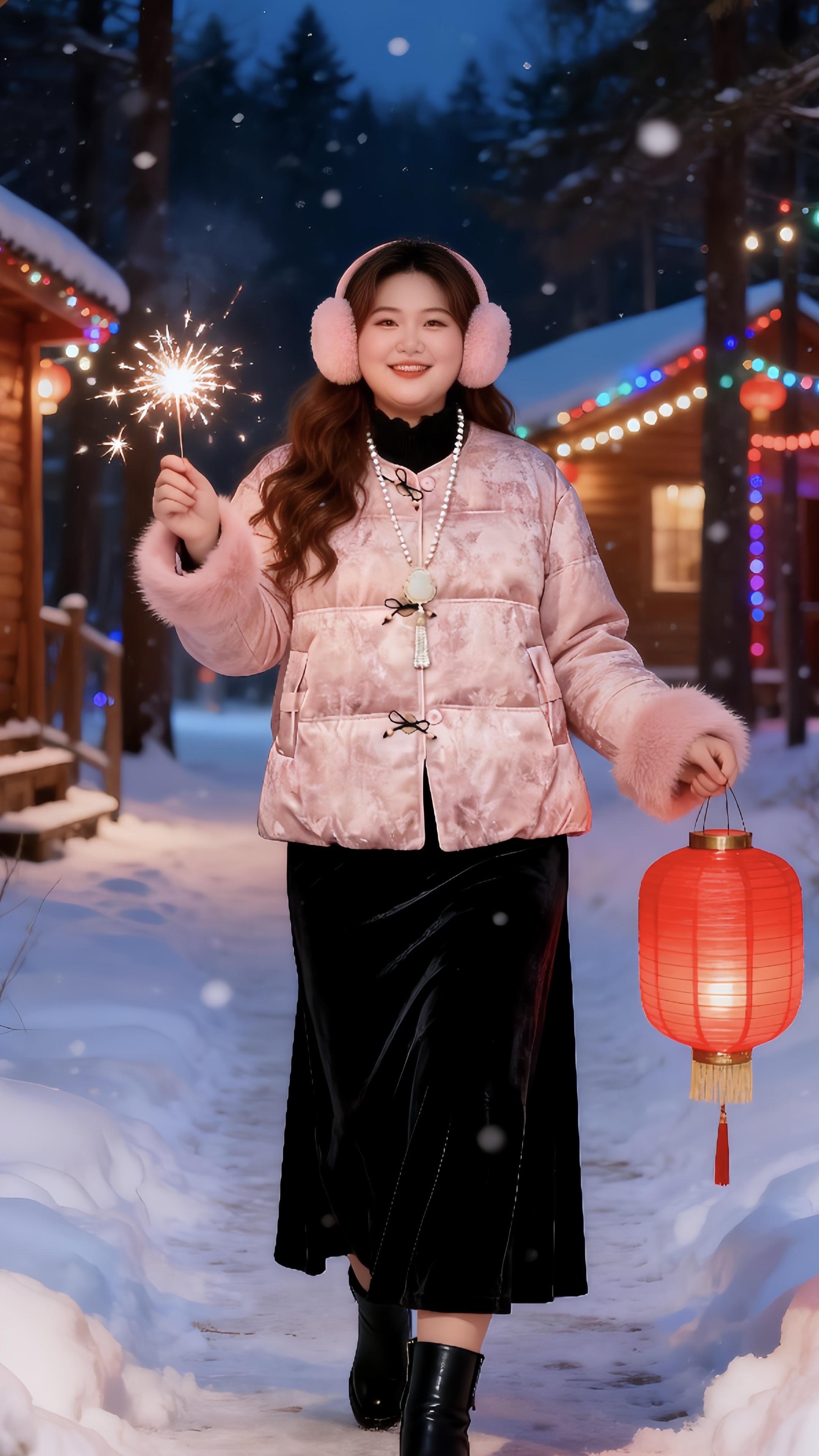 大码女装 国风棉服胖妹妹的冬季有效穿搭新年好运红我先穿上了 棉服也能穿出时尚感