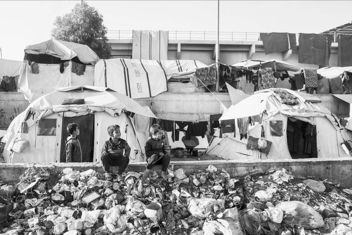 这是一组12月20日拍摄的暂住在加沙城一处垃圾场附近的巴勒斯坦儿童。