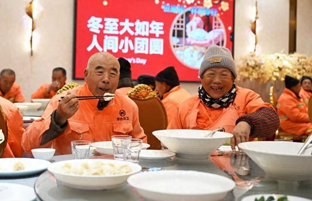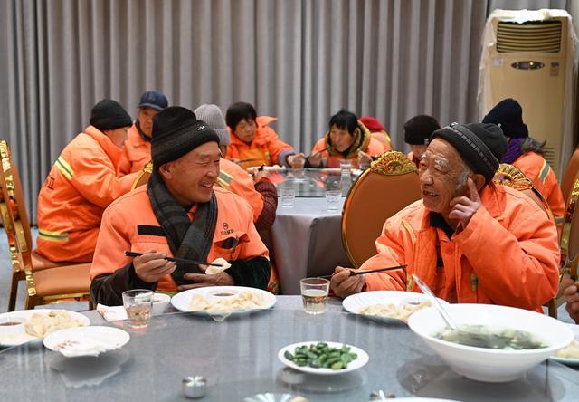 12月21日,邢台市环卫工人在马凯餐厅吃冬至饺子。