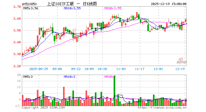 12月19日,上证50ETF工银(510850)涨0.62%,成交额1658.66万元。当日份额减少120.00万份,最新份额为5449.89万份,近20个交易日份额减少60.00万份。最新资产净值计算值为1.95亿元。
