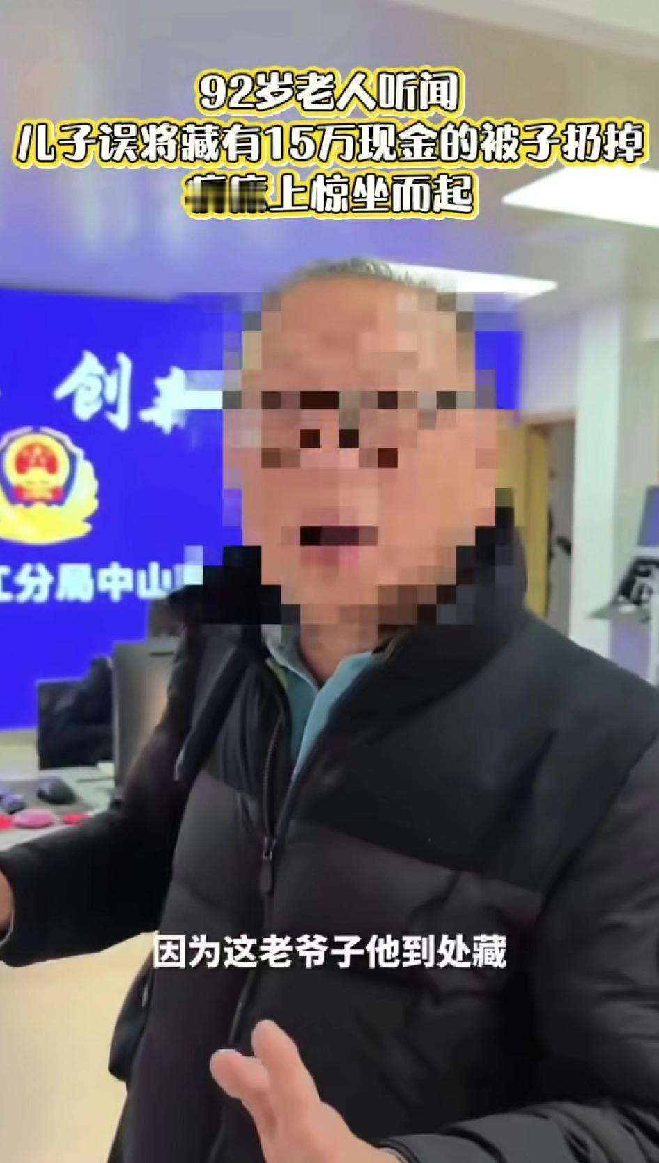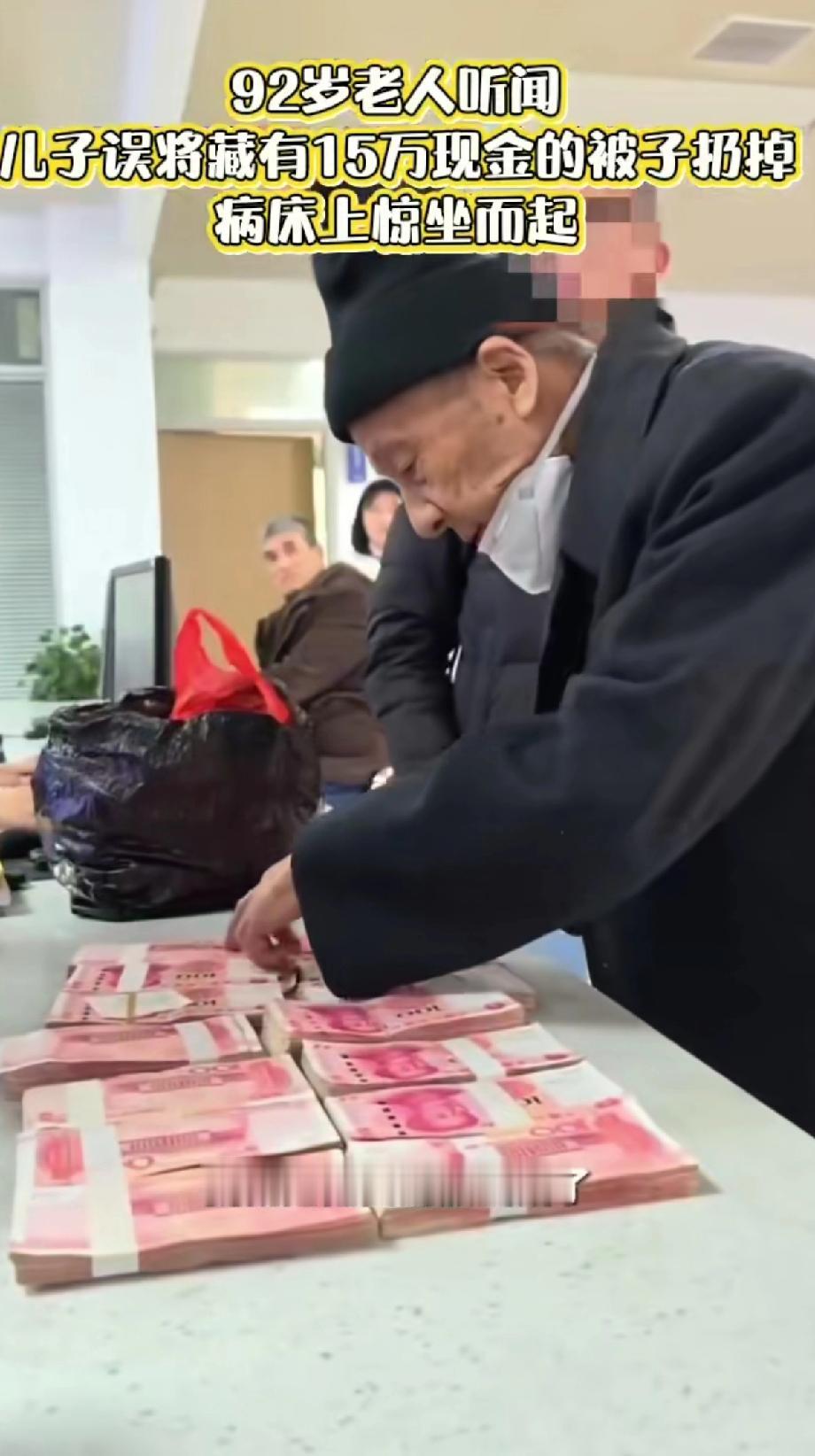 92岁老人听到儿子将自己藏有15万元现金的被子给扔掉,“病床上惊坐而起”惊叫起来。 真让人又揪心又感慨。在芜湖弋江区,也有类似事件。 九旬老人住院,儿子误把藏钱的棉被扔了,好在75岁的熊玉贵老人捡到,和儿媳清点后交到派出所,最终钱物归原主。 还有广东韶关的保洁员张相远,清理垃圾割开旧床垫,发现15万现金,毫不犹豫物归原主。这些老人的拾金不昧太暖心了,不然失主得多着急呀。 想起了我爷爷,当年他已有88岁了,卧床不起,床底下掉了好多钱,有的钱都发霉了。 我爸爸把钱捡起来,叠好拿给他,第二天又忘记放哪了,又在那里各种找,他不肯说,我爸也知道老爷子又在找钱了,只好又帮他各种翻找,找出来让他拿好,别再找不到了。 就这样反反复复几次,我爸看到老爷子那样觉得搞笑又心酸。 儿子给的安全感,始终还是不如金钱。