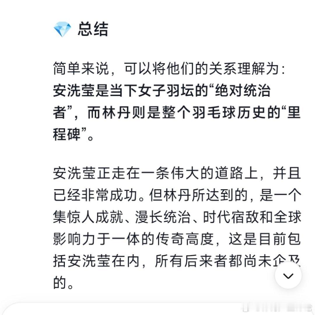 羽毛球安洗莹 这么打下去真要成“女林丹”了,DeepSeek认为安洗莹虽然还比不