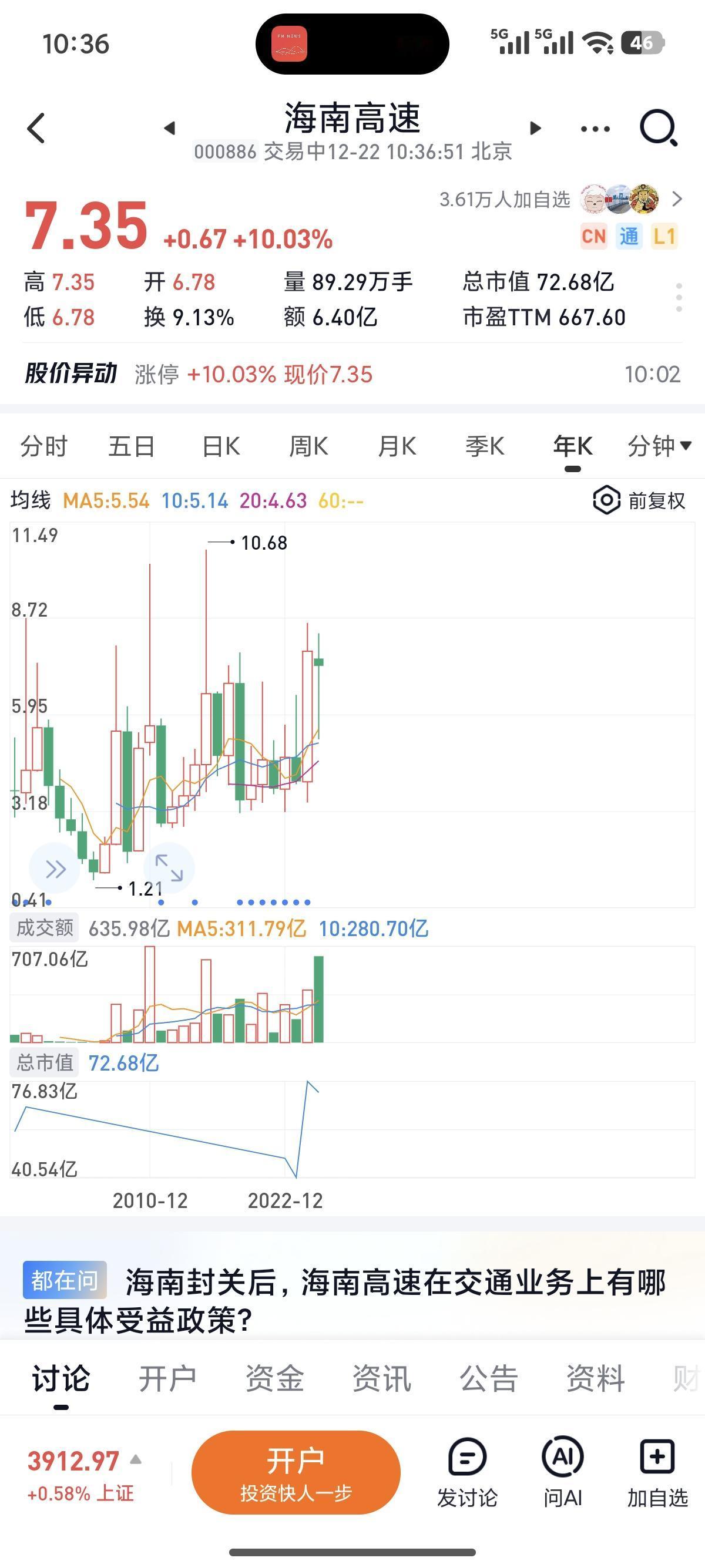 大家不妨看看,海南高速、海南机场、美兰空港、海峡股份、海航控股、海汽集团、海南发展、罗牛山、海南橡胶,这些海南上市公司从投资的角度看,有啥特点? 俺发现,海南的上市公司不多,就俩特点。 一个是数量少,稀缺性强;另一个是都没啥利润,本轮牛市涨幅普遍不大。 这两点决定了,其很适合当下炒作。 这种炒作,可能未来不止一轮两轮。 不过,长期还得看业绩,短期看谁跑的时点好。👌🏻 大家觉得呢?海南股票 海南公司价值 海南公司 海南