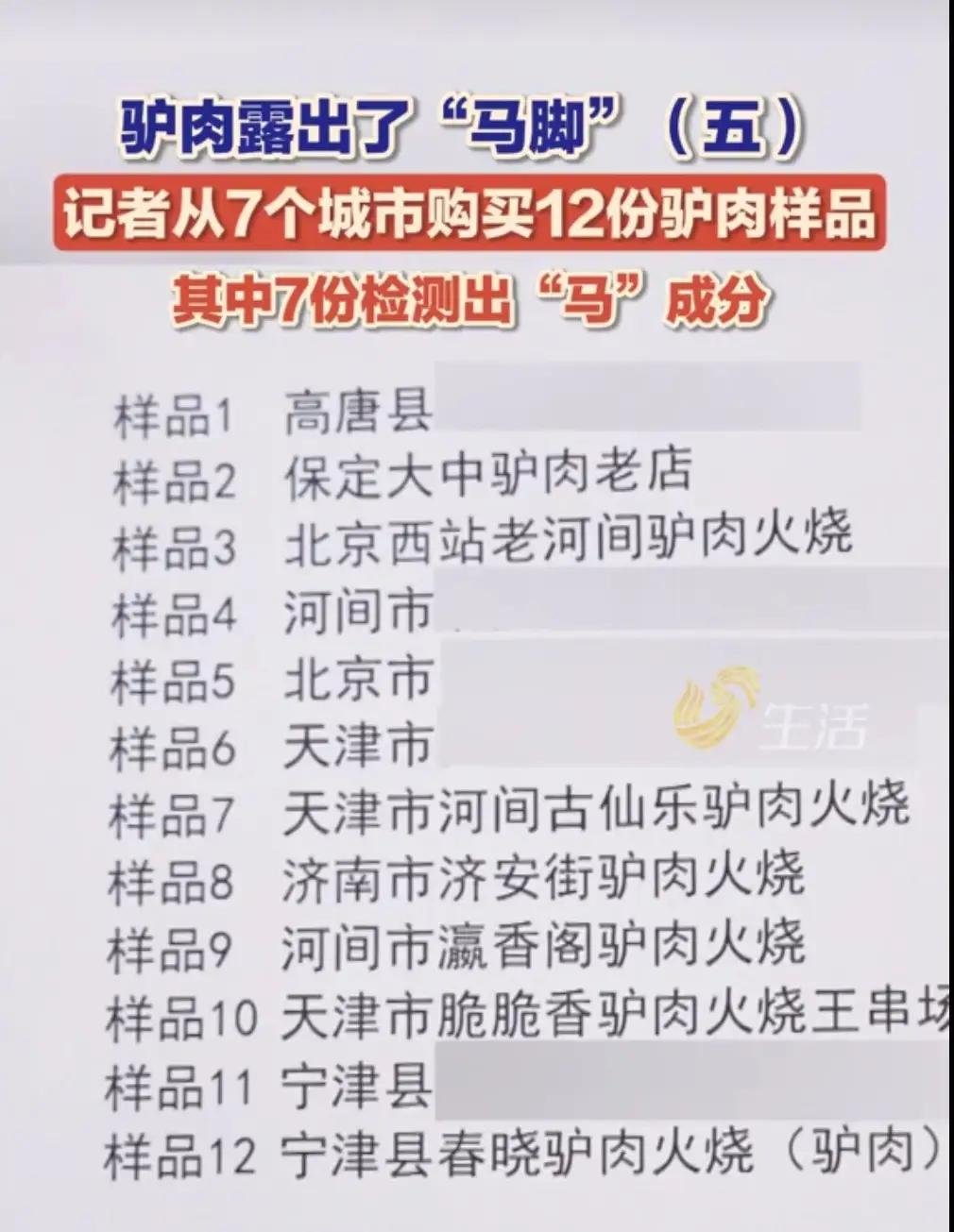 惊!7城买12份驴肉,7份掺马肉!咱买驴肉别再被坑了 驴肉造假 消费避坑 朋友们,咱平时爱吃的驴肉火烧、酱驴肉,可能根本不是驴肉! 网上有媒体记者刚做了个调查,从济南、北京、天津等7个驴肉消费主要城市买了12份驴肉样品,结果7份都检出了马成分,这比例快六成了,想想都后怕! 咱老百姓买驴肉,图的是那口独特的鲜香,结果花着驴肉的高价,吃的却是马肉,这不仅是花了冤枉钱,更让人心里膈应。 为啥商家敢这么干?说到底还是因为利润差太大!鲜马肉才32块钱一斤,做成驴肉熟食能卖到120块一斤,一斤就能赚60多块,这高额的利润,就让不少黑心商家动了歪心思。 更离谱的是,有些样品里压根没一点驴肉成分,纯纯的“挂驴头卖马肉”,把咱消费者当冤大头呢! 其实驴肉和马肉咱自己也能简单分辨,别再被糊弄了: 看纹理颜色:驴肉是红褐色,纤维细还松散;马肉偏暗红,纤维粗得像麻绳,一瞅就不一样。 闻气味:驴肉是醇厚的肉香,马肉会带着一股汗酸味,就算煮了也消不掉。 摸价格:熟驴肉正常得120-160元一斤,要是碰到几十块一斤的,那指定有问题,别贪便宜! 咱普通人买肉图个放心,遇到这种造假的情况也别认栽。 买驴肉一定要去正规商超、品牌店,小票啥的都留好。 要是怀疑买到假的,就把样品送去检测,拿着报告找市场监管部门投诉,按规定还能要求退一赔十呢! 不能让这些黑心商家赚着昧心钱,还欺负咱消费者。 朋友们,你们有没有买到过疑似假驴肉的经历?或者还有啥鉴别驴肉的小妙招?评论区聊聊,咱互相提个醒,别再让黑心商家钻了空子! 点亮〔收藏和赞〕你我共同成长 (内容取材网络,添加个人观点,仅供参考)