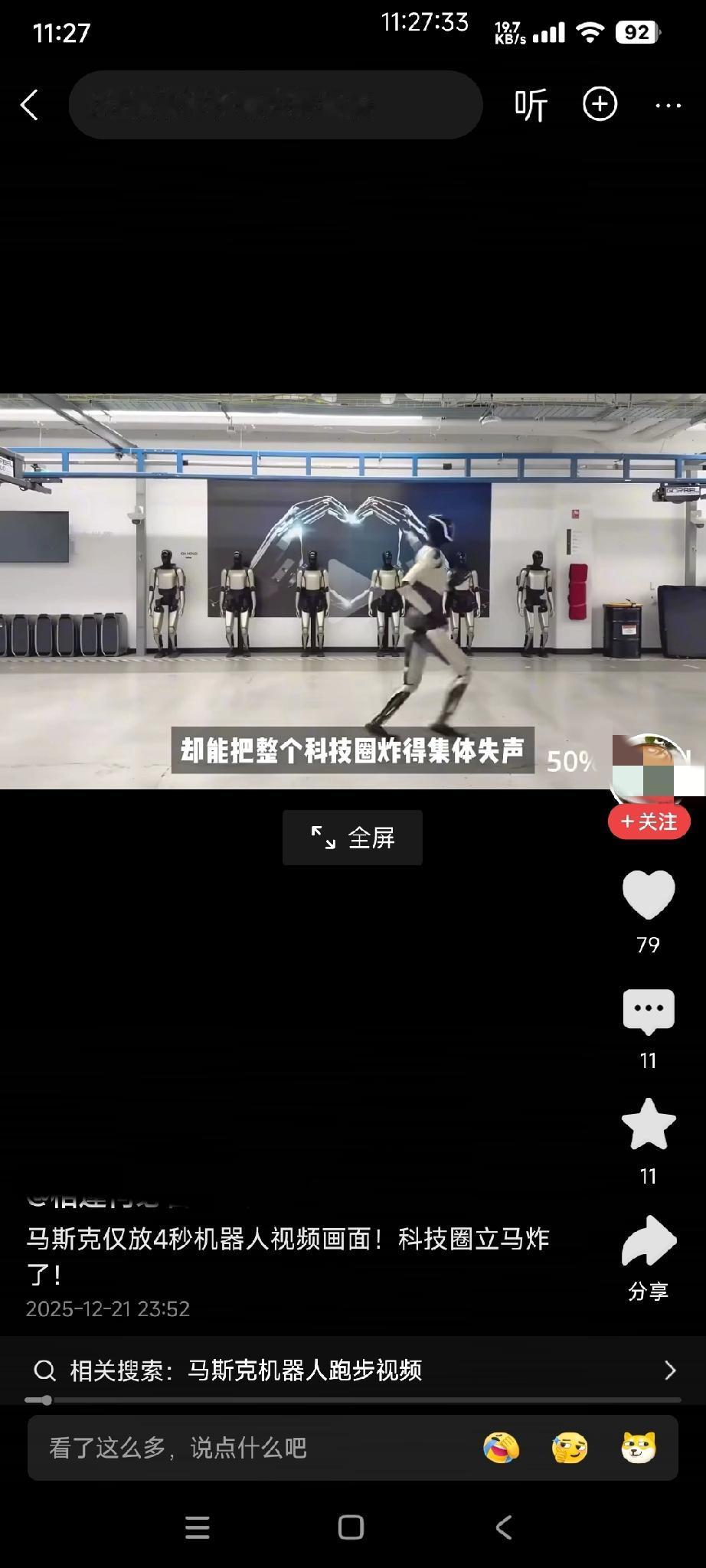 王力宏那个伴舞的机器人一出来。我就猜到大侄子要放大招了。 果不其然,这个博主说马斯克的机器人只跑了四秒,却把整个科技圈炸的集体失声,理由是底层逻辑不是一个时代的生物。 大概意思就是中国的机器人能跑能跳能后空翻没用,没有马斯克的目标远大! 马斯克自己都被震撼,转发中国机器人后空翻的视频,居然还有人跳出来说马斯克的机器人更领先,马斯克自己看了都要摇头。 目标远大没问题,但也得脚踏实地从基础出发。 连月球都上不去,就喊着去火星就太浮夸了! 这位博主让人反感,不从实际出发,搞一些所谓“底层逻辑”看起来高大上,实际上是完全不符合实际。