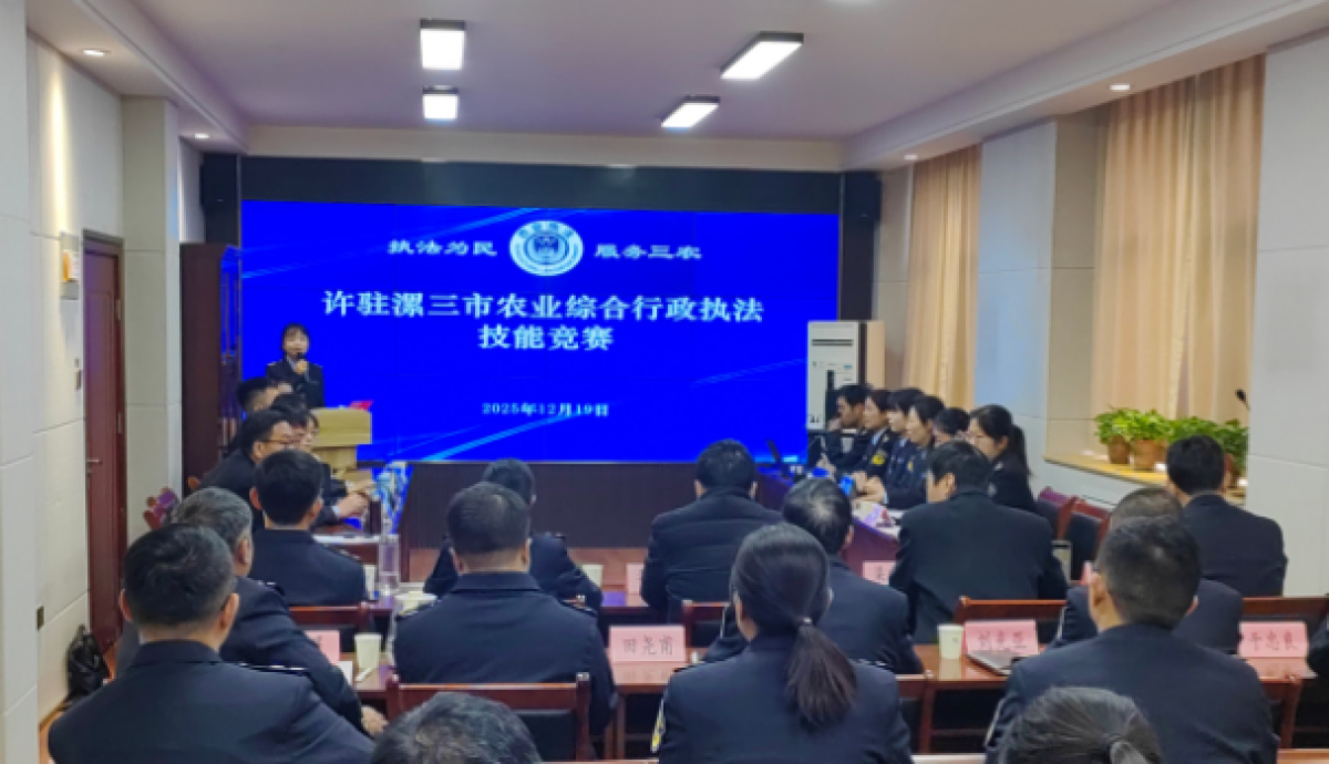 12月19日,许昌、驻马店、漯河三市农业综合行政执法技能竞赛交流活动在漯河市成功举办。省农业农村厅农业综合行政执法监督局三级调研员李明魁、省农业执法专家刘菊梅到场指导。许昌市农业综合行政执法支队书记谢占伟,驻马店市农业综合行政执法支队支队长梁雪杰,漯河市农业农村局党组成员、农业综合行政执法支队支队长王军东带队参加。