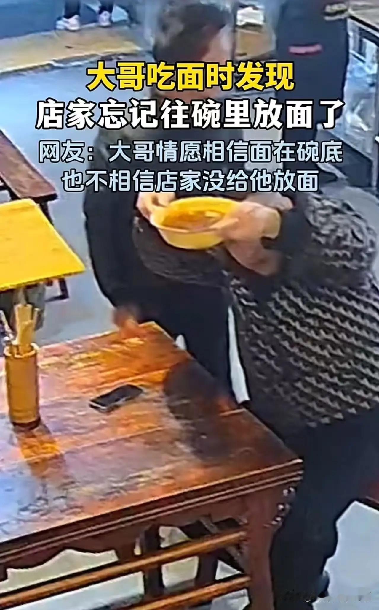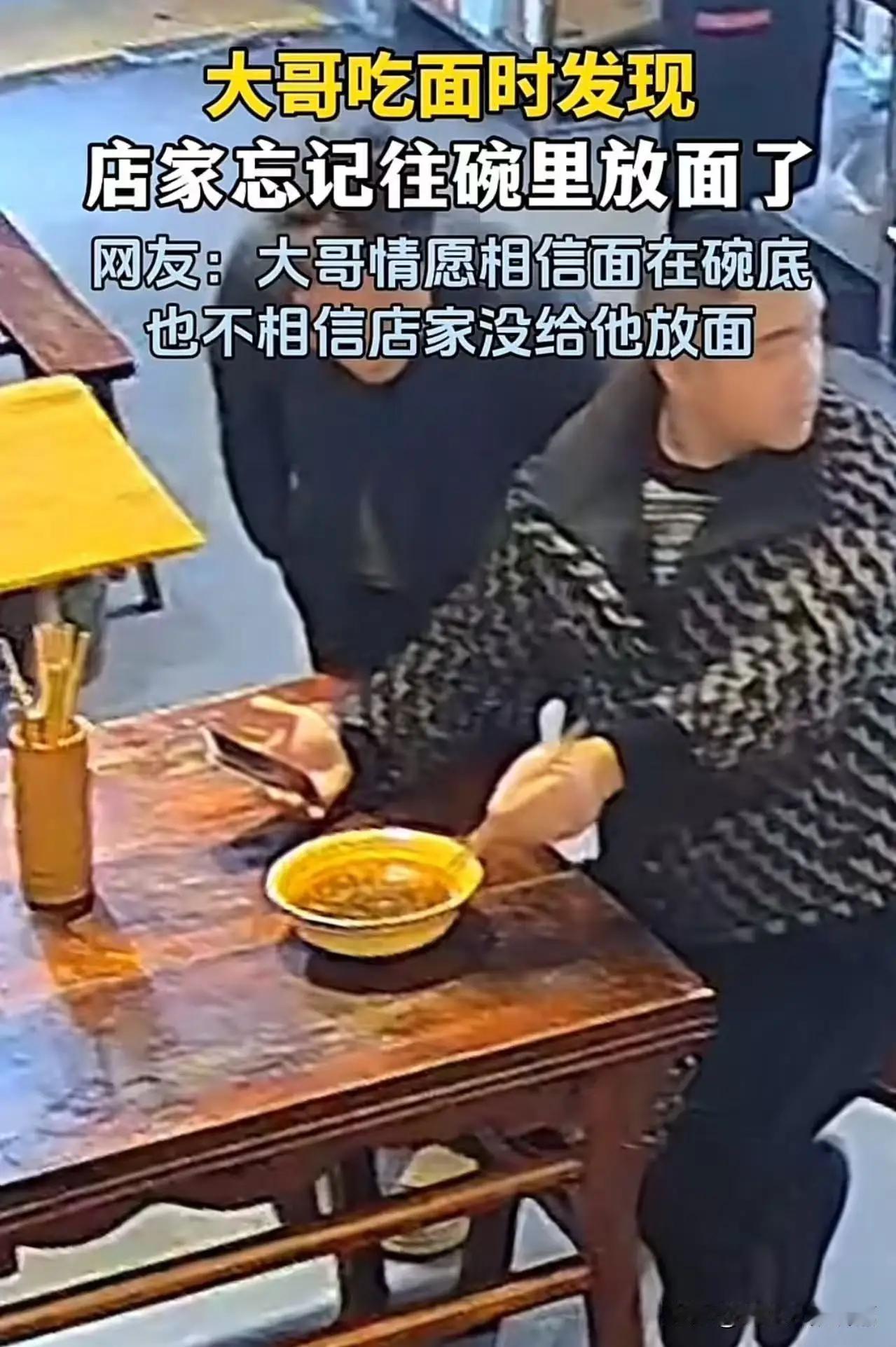 笑不活了!四川icon,大哥去面馆吃面时,发现碗里没面。但大哥情愿相信面在碗底也不相信店家没给他放面!网友:大哥是个实在人! 这天,大哥肚子饿了去面馆点了一碗面,可是服务员把面端上来以后,大哥往碗里一瞧,居然看不见一根面条icon的影子,只有清汤寡水在那晃荡。 大哥瞬间愣住了,心里琢磨着:“这面条沉到面汤icon下面去了?” 于是,他拿起筷子,在碗里使劲儿地搅啊搅,可底下还是空空如也,连根面条的影子都没见着。 这下大哥可真糊涂了,心里直犯嘀咕:“不应该啊,这面到底跑哪儿去了?难道这个碗有什么玄机?” 就在大哥满头疑问,准备再次搅动碗里的“空无一物”时,突然,一旁的服务员走了过来,脸上带着不好意思的笑:“大哥,抱歉啊,我们忘记放面条了。”说完,她递过一碗热气腾腾的面。 这一幕瞬间点燃了现场的气氛,也在网络上引发了热烈的讨论。有人笑着说:“大哥真是个实在人,面都能相信在碗底,简直是‘面条侦探’的代表。”也有人感慨:“这份信任,让我觉得这个世界还是有温度的,哪怕是一碗空碗,也能让人感受到善意。” 其实,这件事情折射出一个社会现象:在快节奏、充满竞争的生活中,许多人都变得越来越功利、怀疑,但仍有人坚持相信人性中的善良。大哥的“相信面在碗底”,不仅仅是一种幽默,更是一种对生活的信仰——相信好的人、相信美好的未来。 更深层次来看,这也让我们反思:我们是不是也应该像大哥一样,带着一份信任去面对生活中的“空碗”?也许,那些看似没有的东西,正藏在我们未曾察觉的角落,只要我们愿意用心去寻找,就会发现生活其实充满了温暖和希望。 这件事让人忍俊不禁,但更让人感动。它提醒我们,无论世界多么喧嚣、多么复杂,保持一颗善良、信任的心,或许就是我们最宝贵的财富。大哥用他的行动告诉我们:在这个充满不确定的时代,最值得珍惜的,是那份纯粹的善意和信任。 所以,下次遇到“空碗”时,不妨学学大哥,用一份相信去面对,也许,奇迹就在那一瞬间发生。生活本就如此,充满了未知和惊喜,只要我们愿意相信,愿意等待,幸福就会悄悄降临。 这,就是生活的魅力——在平凡中发现不平凡,在简单中找到温暖。你我都在等待那份“面在碗底”的奇迹,愿我们都能像大哥一样,用一颗真诚的心,迎接每一个未知的明天。头号周刊 四川面馆