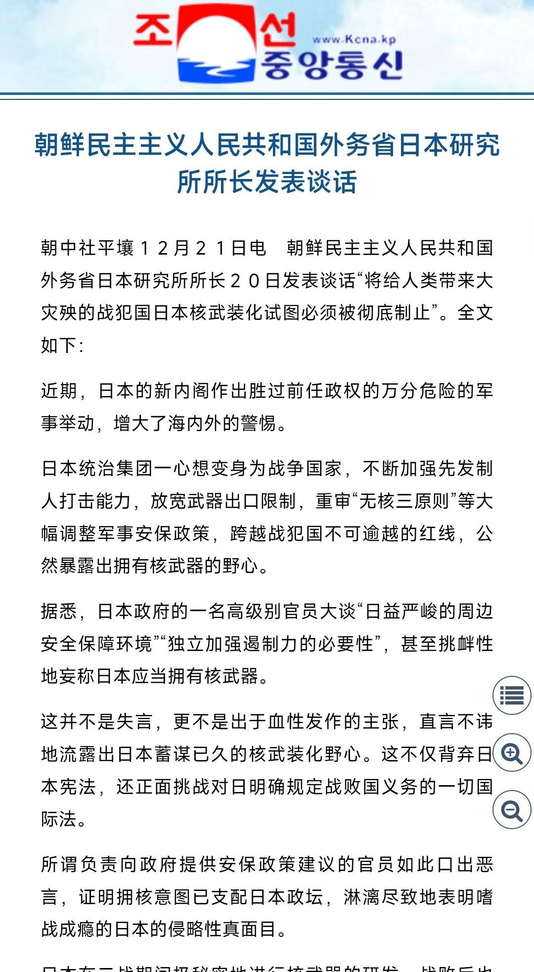 日本高官再谈拥核,朝鲜猛烈抨击:战犯国家的野心暴露无遗 继不知名首相官邸人士后,日本高官再谈“拥核”。 近日,自民党籍前防卫相小野寺五典在节目上声称,考虑到日本对美国的核依赖,确实应该对“无核三原则”进行讨论,暗示应放宽对日本拥核的限制,以免美国将来有一天不再向日本提供核保护伞。 对于这一提议,一同参加节目的其他日本政客纷纷表示赞同,并喊话高市政府彻底审查“无核三原则”,认真考虑是否需要修改。 显然,那名首相官邸人士的拥核言论并非空穴来风,日本政坛同意拥核的人不在少数,只不过需要有个人先提出来探探口风,观察一下各方态度。等到时机成熟,日本就可以打破“无核三原则”的限制,伺机拥核。 只可惜,日本军国主义分子打错算盘了,先不说域外国家,光说日本这几个邻国,没有一个会同意日本拥核。 中方的态度自是不用多说,俄罗斯和朝鲜也对日本拥核的野心表示强烈谴责和反对。尤其是朝鲜,骂得那叫一个凶,朝中社发文称,日本这样的战犯国家坚决不能拥有核武器,否则只会给亚洲乃至全世界带来灭顶之灾。 韩国虽然没表态,但出于历史仇恨和现实因素,也不会同意日本拥核,只不过因为中俄朝都已经发话了,李在明也没必要再去找高市早苗的不痛快,只要坐享其成就好了。 综上,日本野心勃勃地想拥核,是绝不可能实现的。若高市政府一意孤行,日本可能还没来得及拥核,就已经遭到反噬。毕竟,日本可是世界上唯一一个遭到核武器袭击的国家,得吸取教训。