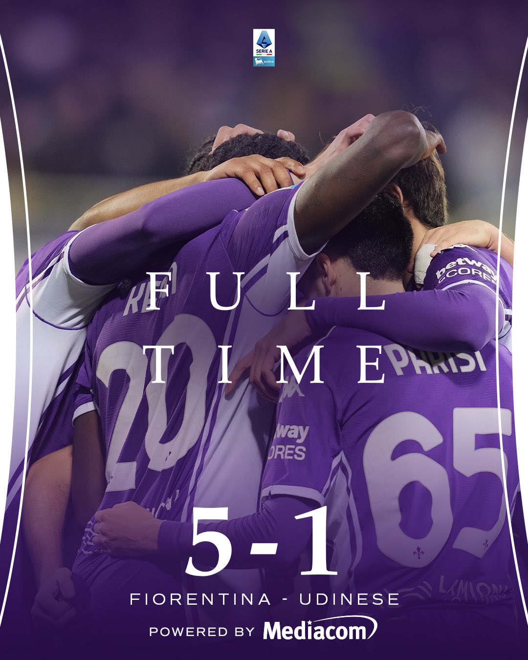 佛罗伦萨在16轮联赛后,终于取得赛季首胜。他们在主场5-1击败乌迪内斯拿到3分,现积9分,距保级区的热那亚相差5分,本场胜利无疑让他们瞥见了一丝保级曙光。