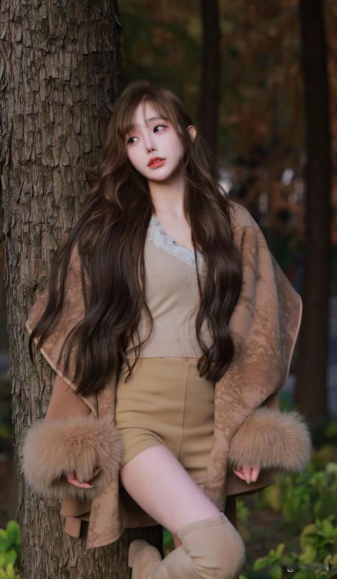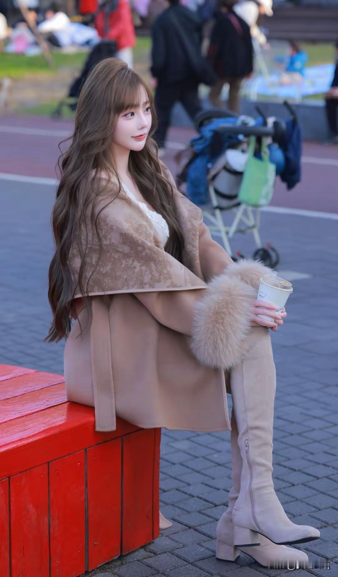 温柔冬日穿搭,毛绒外套搭配长卷发,甜美动人!🌟💕