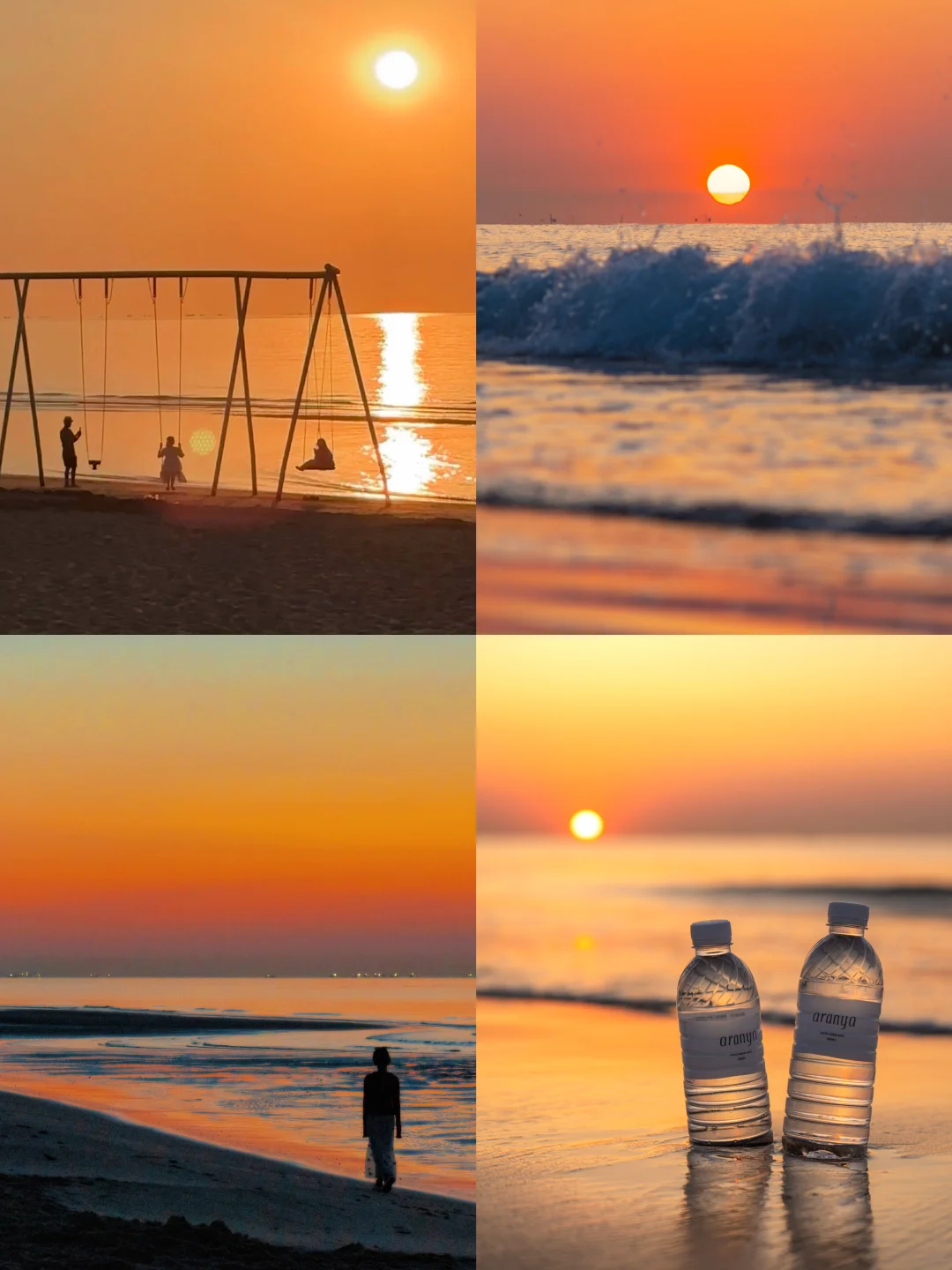 🔹7:00 日出(🍺瓶摆在海滩上,浪漫橘子海,可带小瓶葡萄酒增加氛围)