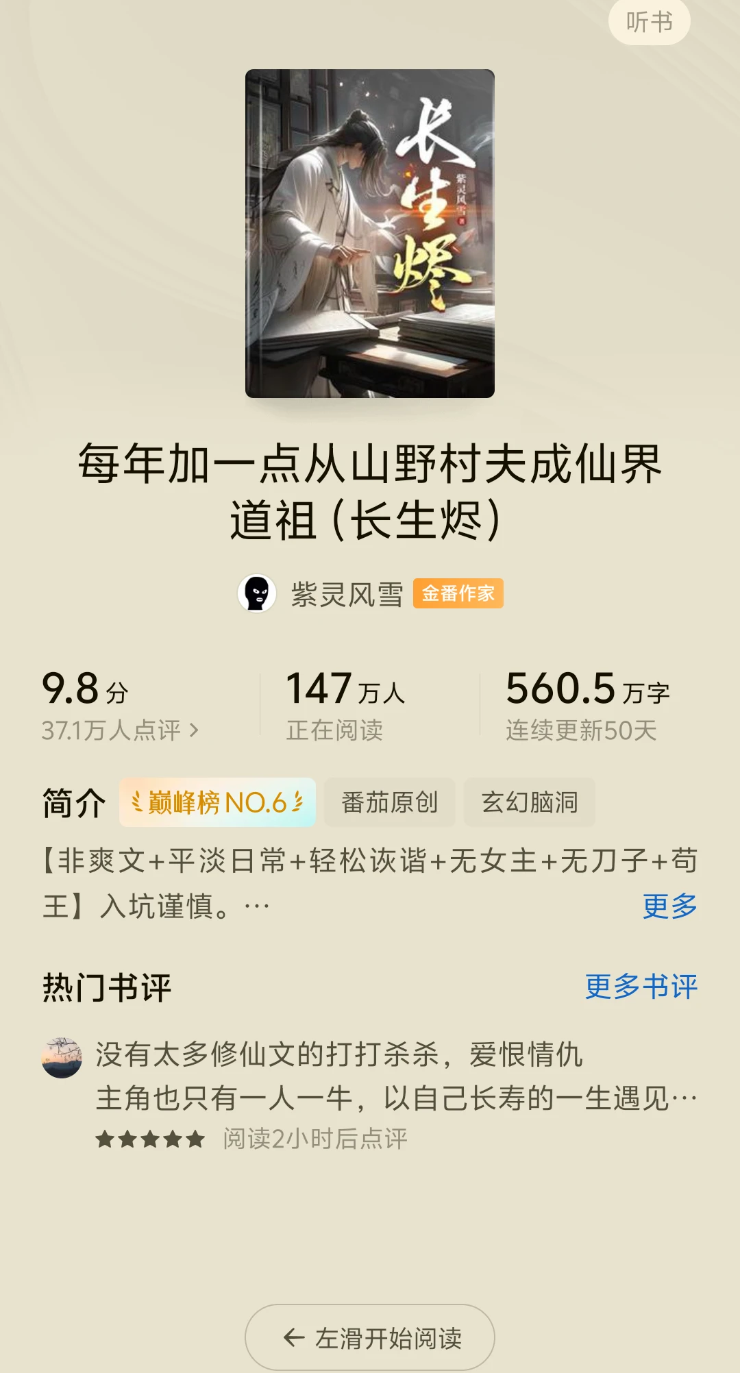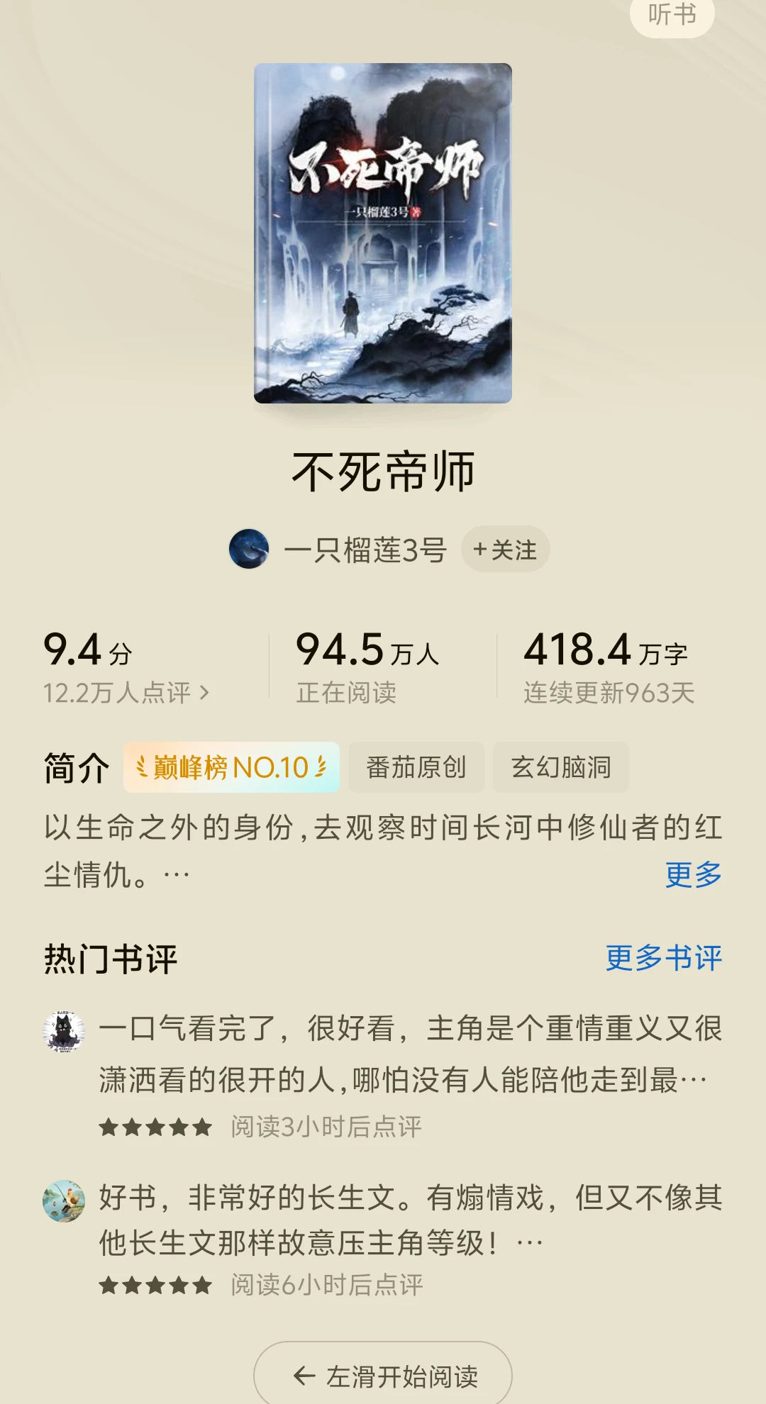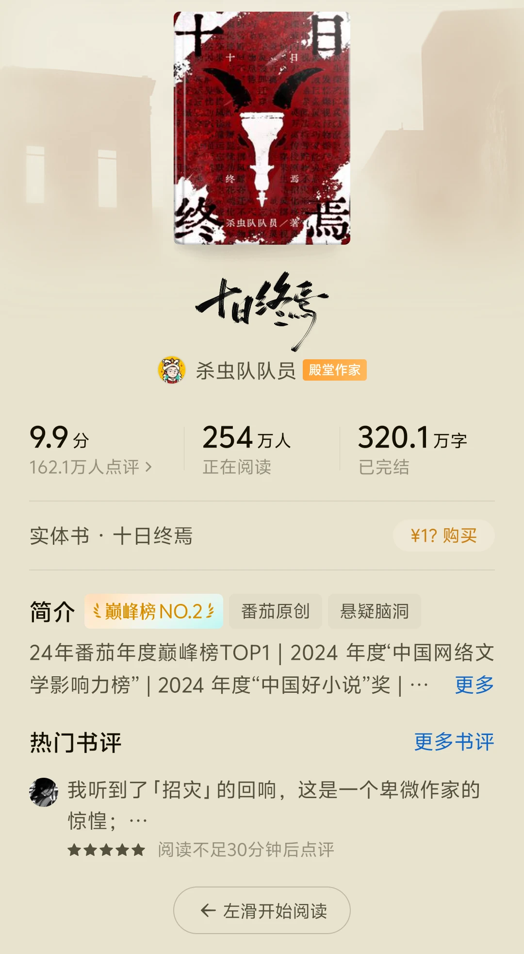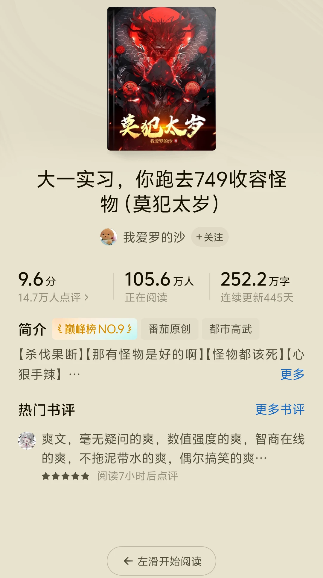打开软件,看到了巅峰榜,这是众网友根据书籍质量、热度、评价等方面排出的前10名,有耳熟能详的,也有比较陌生的,你看过几本呢? 1、《我不是戏神》 2、《十日终焉》 3、《游戏入侵》 4、《我在精神病院学斩神》 5、《诸神愚戏》 6、《长生烬》 7、《北派盗墓笔记》 8、《冒姓琅琊》 9、《莫犯太岁》 10、《不死帝师》