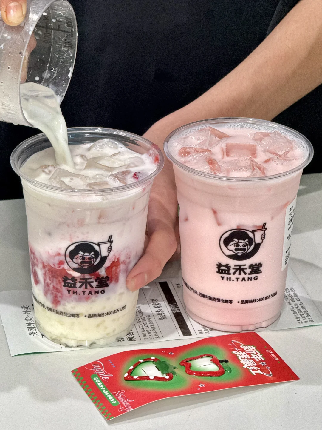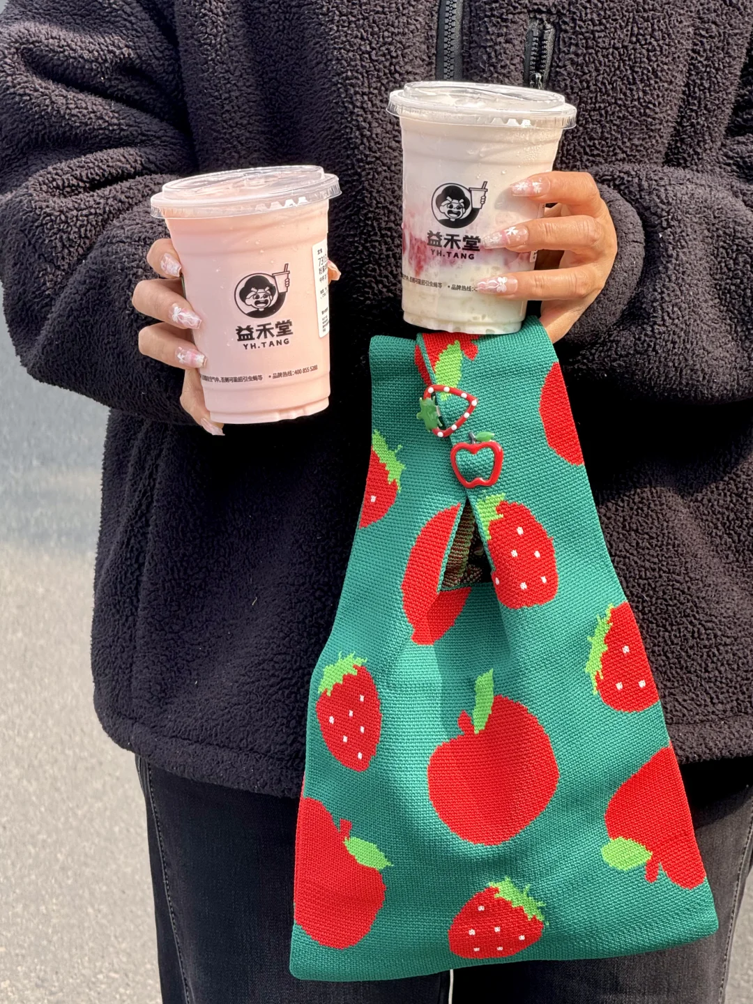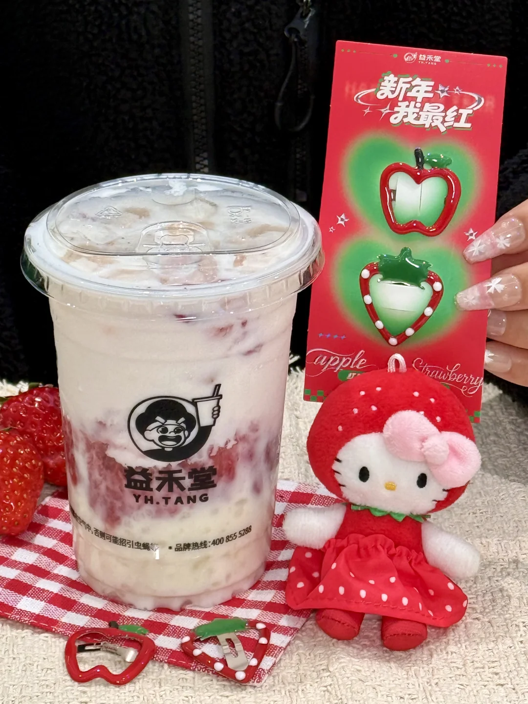 益禾堂我小瞧你了新出的这俩都好好喝……粉黛苹果打败了某针王苹果在我心中的地位🏅 一口就被惊艳到了,红富士搭着红心苹果,苹果味无敌浓又清新,像是压缩了十个苹果。咽下去后茉莉茶香立马涌上来了!层次感十足,根本停不下来,太好喝了啊啊啊啊 还有当红莓莓米麻薯也让人好喝的想鼠。。。每一口都能嚼到草莓和米麻薯!软糯拉丝,俺喝了牛乳的,草莓奶香宇宙无敌霹雳爆炸好喝!!还有个米乳版!喜欢糯米香的可以选这个 俺买的套餐还给了周边🍎🍓红发卡和“好苹友”针织包!这不妥妥的y2k穿搭单品!!!