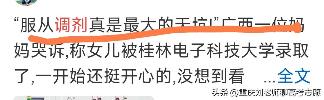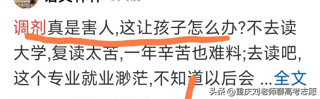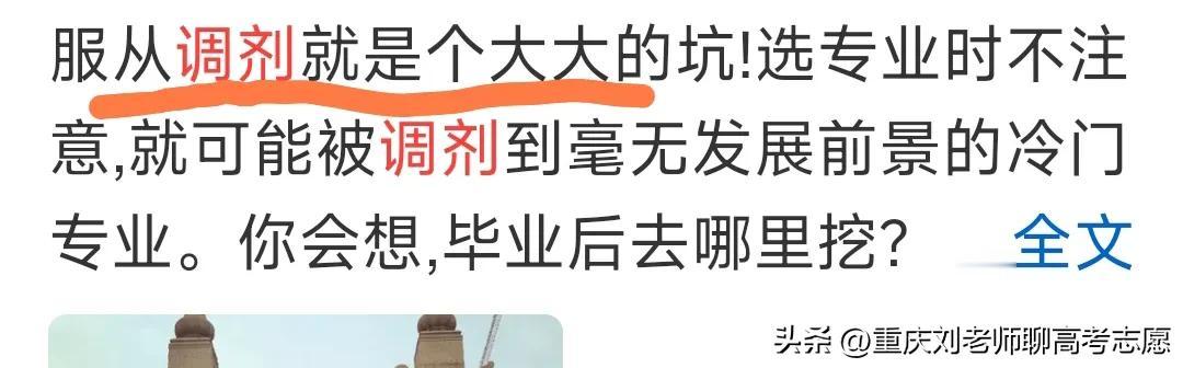 动不动就开口抱怨“调剂是大坑”、“服从调剂真是坑”,你为什么不找一下自身原因?为什么会发生调剂?有些人分(位次)不占优势,硬是要好学校+热门专业+大城市,被调剂了,然后就不舒服了,歇斯底里抱怨,还不是你的贪心导致的? 大约四年前,当时重庆还是院校平行志愿模式,有个重庆渝西某区家长私信咨询我,自己女儿650多分,报中山大学这几个专业能否录取?我说这个位次(一千七八百位)够呛,你如果服从调剂很可能被调剂,如果不服从调剂可能退档,这个一定慎重,你如果有明确专业方向,认准一些专业,不如看看华南理工大学,它很多热门工科专业位次不算高,也就是说去中山大学可能偏冷门专业,但在华南理工可能选很多热门专业,结果倒好,硬是选中山大学那几个专业(医学计算机经济学等),最后竟然调剂到中法核,当年这个专业还没有单独代码招生,统一在一个院校代码之下!很久一段时间后她又咨询我,说她女儿不适应,不喜欢这个专业,学物理头疼,还要修法语,问转专业怎么样,实事求是说,这个专业无论从就业(中广核,中核没任何问题)还是升学(升学率很高)都相当不错,但孩子就是不喜欢不适应,把她妈妈愁死了,甚至想复读,我听了也是五味杂陈,其实当时选华南理工大学什么事都没有! 为什么非要把中山大学当第一志愿?因为他们一家认为中山大学知名度高,排名靠前,当然选它,但它的录取位次也同样很高啊,你那个位次去了没有优势,热门专业你喜欢的专业录取不上啊,而华南理工大学因为知名度排名不如中山大学,但相应的位次低点!你就可能选到你要的专业啊! 调剂与坑不坑没关系,与你对位次的认识有关系,你非要去认定学校录取位次而不是专业录取位次,非要去冲,什么都想要,不调剂你调剂谁?凡是被调剂的,都是想好事的,你信不信??调剂只是规则一部分,你要吃透规则,而不是抱怨规则!说调剂是坑的人,本身就是非理性的,是贪心作祟!