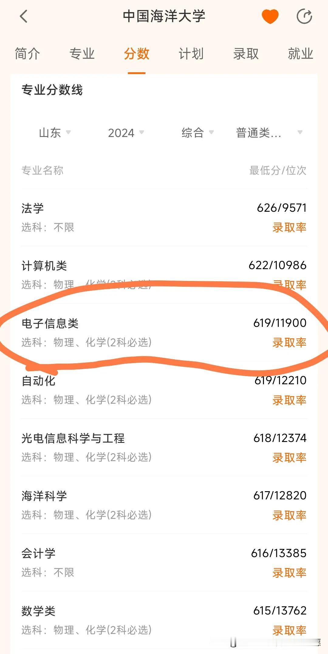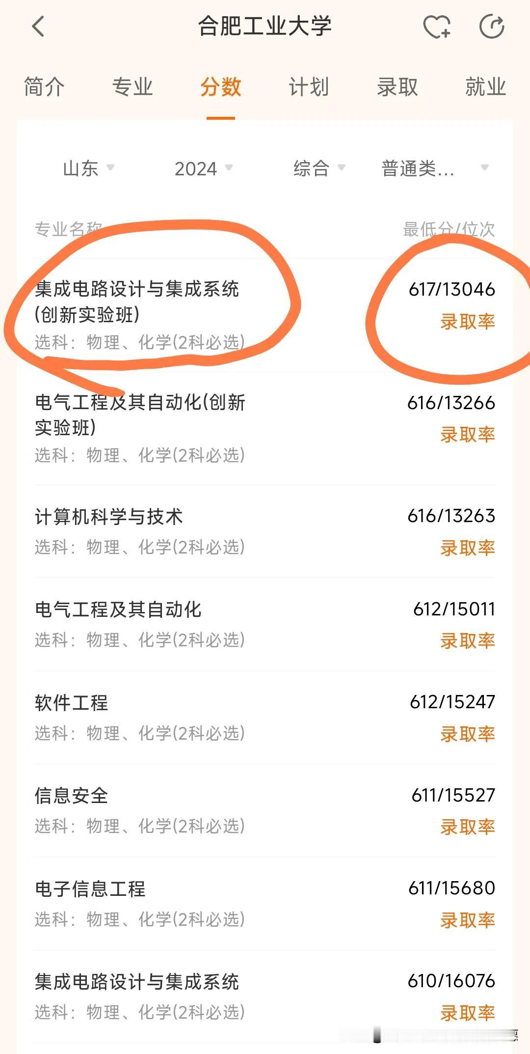 山东农村男孩高考623分,想为“芯片”贡献力量,最终被中国海洋大学录取,我查了海大录取分,可以断定该生被电子信息类录取,还多了4分。被985名校录取,专业还是与芯片有关的电子信息类,按理说这个志愿填报的不差,但在我看来很不理想,典型的不懂院校专业内涵,属于形式上的填报,照着葫芦画瓢而已。 一般来说,与芯片有关的专业主要有三个:电子科学与技术、微电子科学与工程、集成电路设计与集成系统,广泛一点可以说是电子信息类,这个男孩报考的专业可以说没问题,海大2024年投放的电子信息类里面就包含了微电子科学与工程专业,问题是:中国海洋大学不是电子信息类强校!海大属于典型的行业院校,以海洋科学、水产闻名于世,基础理学还是可以,工学十分薄弱,报考热门的专业是法学、会计、计算机等,非要选择它不擅长的电子信息类专业,这不是妥妥的浪费了高分?并不是说只要985高校,它们的任何专业都值得高分报考,也不意味着它们任何专业都能高质量就业! 既然瞄准了芯片,那最好就读电子信息类强校,623分两电一邮够不到,南邮杭电等没问题,不过我个人觉得合肥工业大学的集成电路(创新实验班)非常值得报考,合工大是工科强校,也是28所国家示范性微电子学院之一,而微电子跟集成电路联系密切,也就是说合工大在芯片领域受到认可,还有,创新实验班保研率很高,据说近50%,而且所在专业的学院与中国科学技术大学联合培养,再直白点,保研中科大相对容易!从就业看,合肥芯片、集成电路产业较发达,合工大毕业生就业大户有长鑫存储、阳光电源、中电科等,无论从专业/学科水平、保研率保研质量还是就业质量等,合工大集成电路创新实验班都值得报考,分数也合适(多6分),性价比很高,真不是海大电子信息类能比的! 或许有人抓着985不放,认为985优于211,但你要结合专业分析,你要考虑学业规划(升学)与职业规划(就业),而不是仅仅因为学校是985就该选它!另外,这个男生来自农村,家庭条件相当困难,那更应该考虑未来的就业质量,而电子类相关专业最好读研,中国海洋大学电子工程学院整体保研率约20%,那保研率近50%的合工大集成电路创新实验班是不是更有价值呢? 总之,个人觉得这个男孩报考不理想,委屈了那个高分,应该有更好的选择,吃了不懂志愿填报的亏!