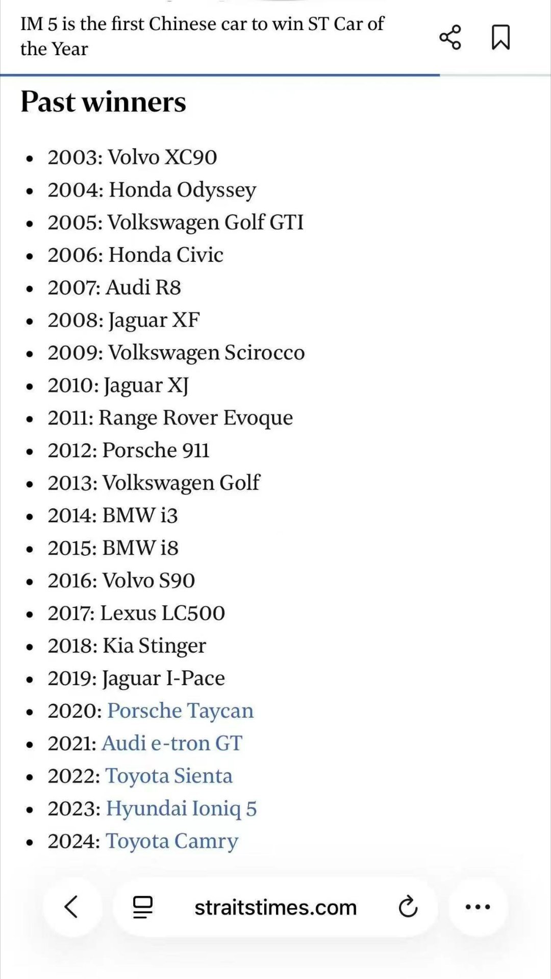 自主品牌逐渐的墙内开花香墙外啦。你看最近智己汽车旗下全球战略车型IM5(智己L6海外版),凭借在设计、品质与操控等方面的综合优势,一举摘得新加坡权威媒体《海峡时报》(The Straits Times)颁发的“2025年度车型”大奖。该奖项被誉为新加坡汽车界最高荣誉;设立23年以来,IM5是首款荣获此桂冠的中国品牌车型,标志着中国高端智能电动汽车在全球核心市场获得权威认可。