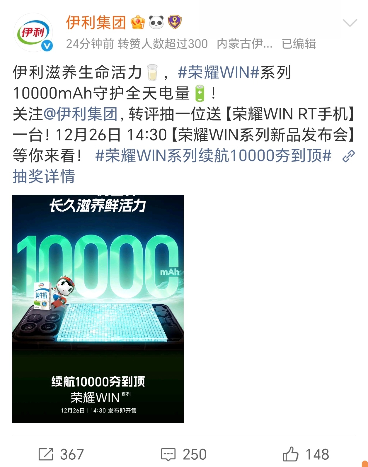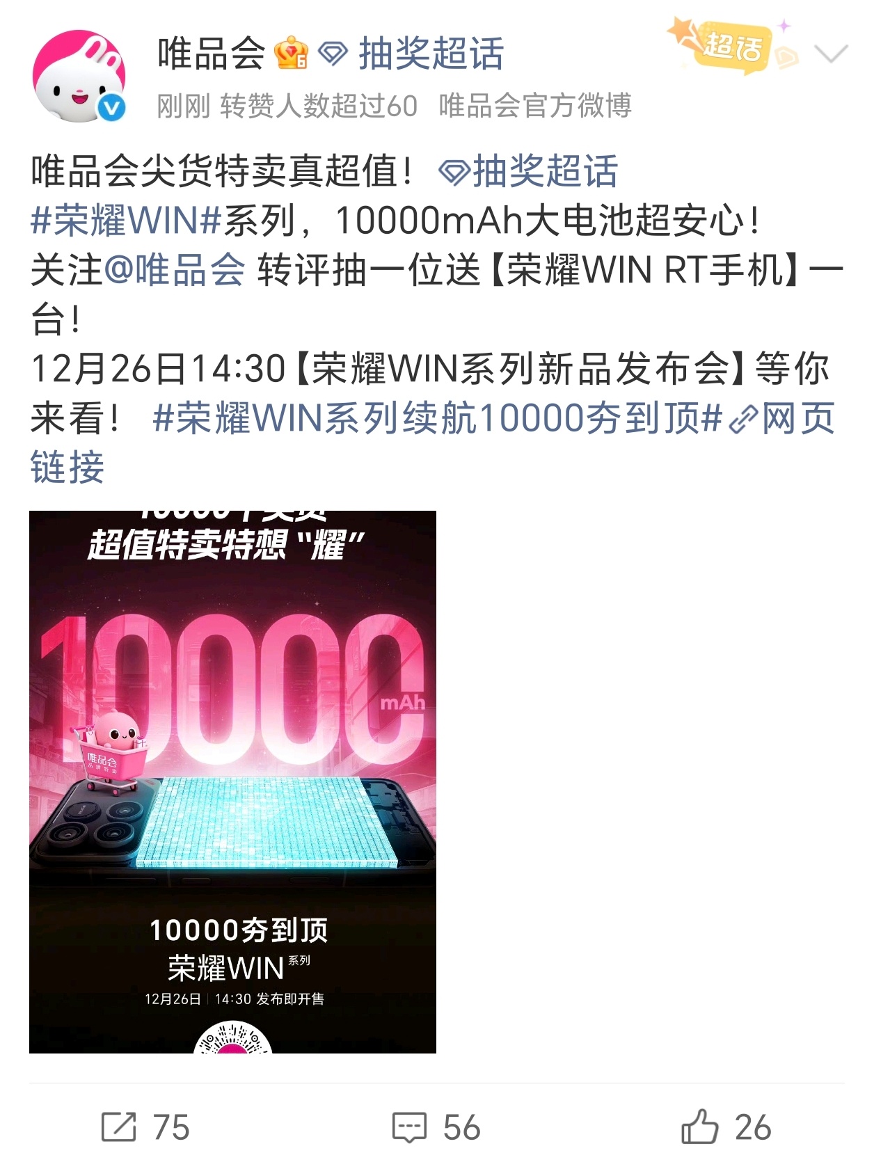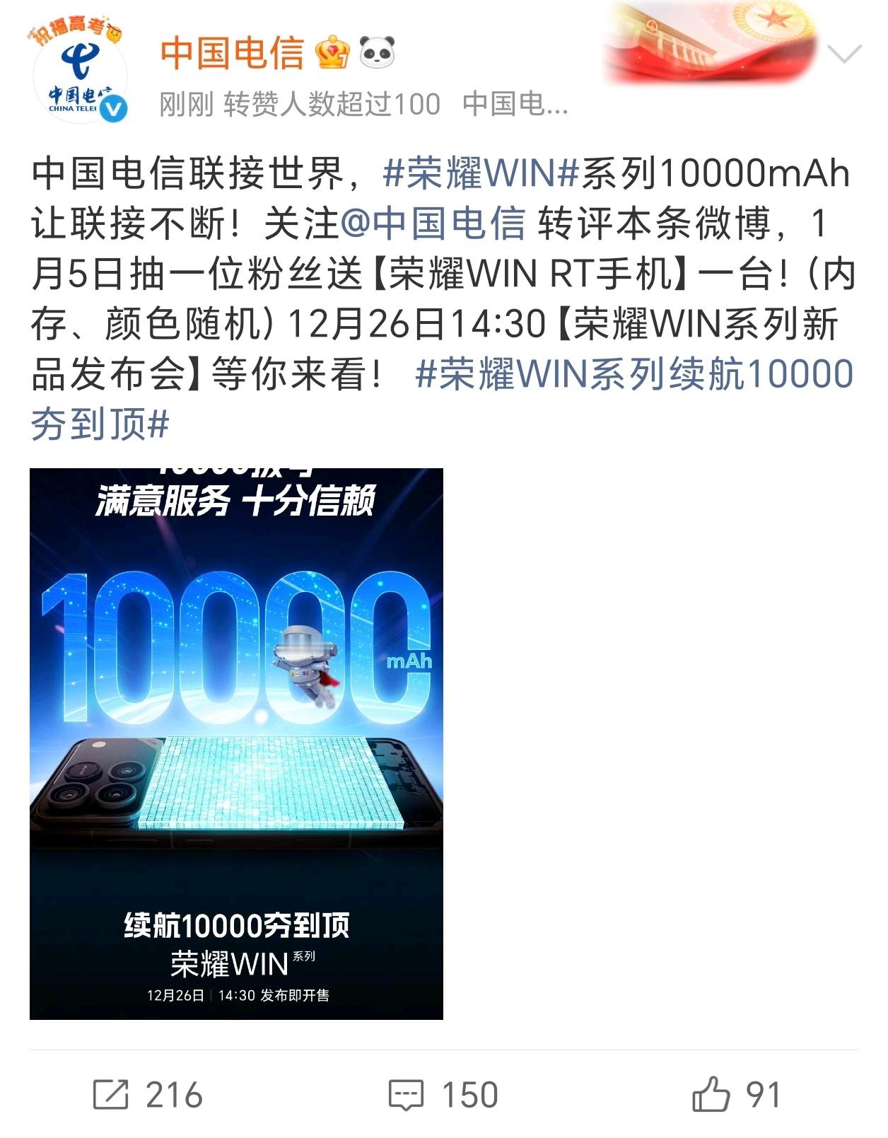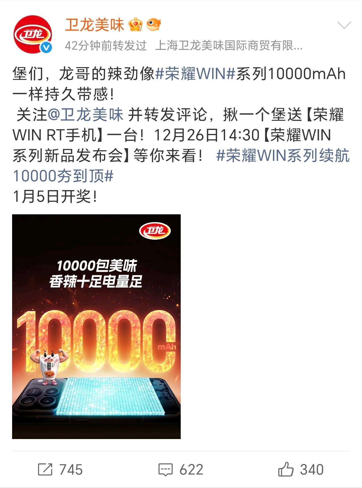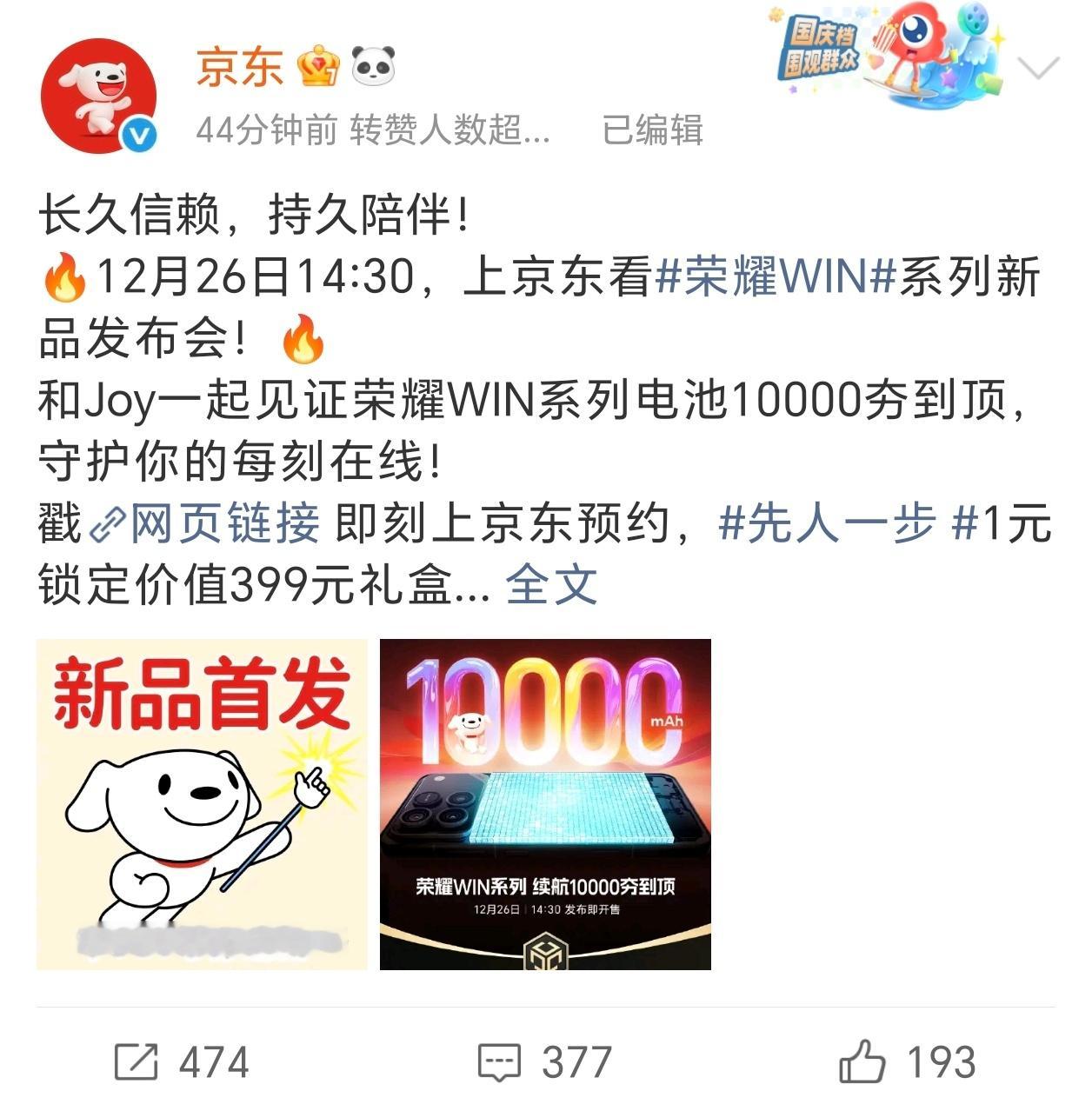 我勒个豆,荣耀WIN今天预热了一万毫安时超大电池,各大合作伙伴这是集体庆祝啊荣耀