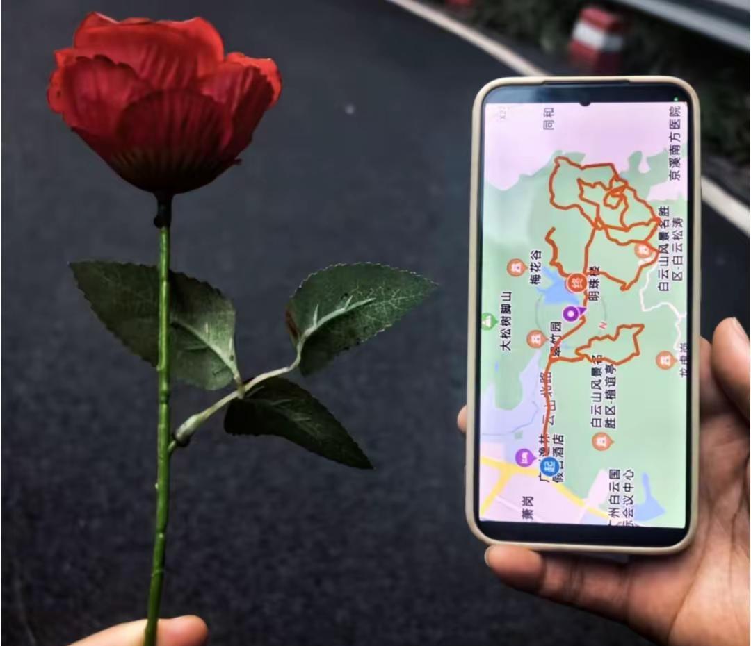 画玫瑰白云山。在白云山的山林间沿着规划好的路线徒步,借助运动记录软件的轨迹功能,就能走出一朵栩栩如生的玫瑰形状。我的攻略里,我提前和我队友踩点确定了玫瑰轨迹的路线走向,我跟着轨迹导航一步步走完全程,我还和我朋友在途中布置了红色玫瑰装饰让画面更有氛围感。方法1是先在地图软件上规划出玫瑰轮廓的徒步路线,标记好关键的转弯和爬坡点;方法2是使用运动类APP开启轨迹记录,徒步时严格按照规划路线行进,保证花瓣、花茎和叶子的轨迹连贯完整;方法3是徒步结束后,和同行的伙伴一起展示轨迹截图,还可以在山林里摆放玫瑰道具搭配拍照,让这份白云山的“玫瑰”更有纪念意义。 其实在白云山画玫瑰的核心,就是把路线规划、实地徒步和创意搭配结合起来,用脚步在青山间勾勒浪漫,也和身边的人一起留下了特别的户外回忆。希望对大家有帮助