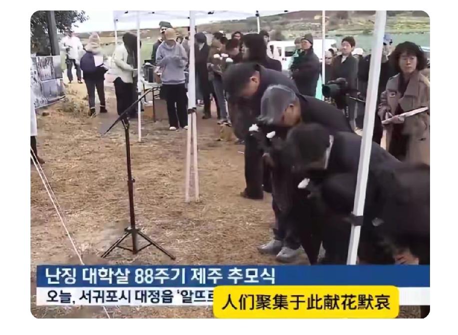 12月13日南京大屠杀死难者国家公祭日,韩国济州岛一处旧日军机场遗址前,近百名民众自发悼念南京大屠杀遇难者,还拉起“南京和济州苦痛的相遇”横幅,这一幕被韩媒直播后在中国社交平台引发热议。 有人觉得李在明上台后这事儿有点怪。其实济州岛和南京有着相似的苦难历史。1937年前后,日本把济州岛当军事据点,从这里起飞的飞机对中国长江中下游地区实施36次跨海轰炸,投下约300吨炸弹。济州岛民众或许是出于对那段沉重历史的反思,才自发举办悼念活动。这对中韩铭记历史、增进友好来说,不失为一件好事。