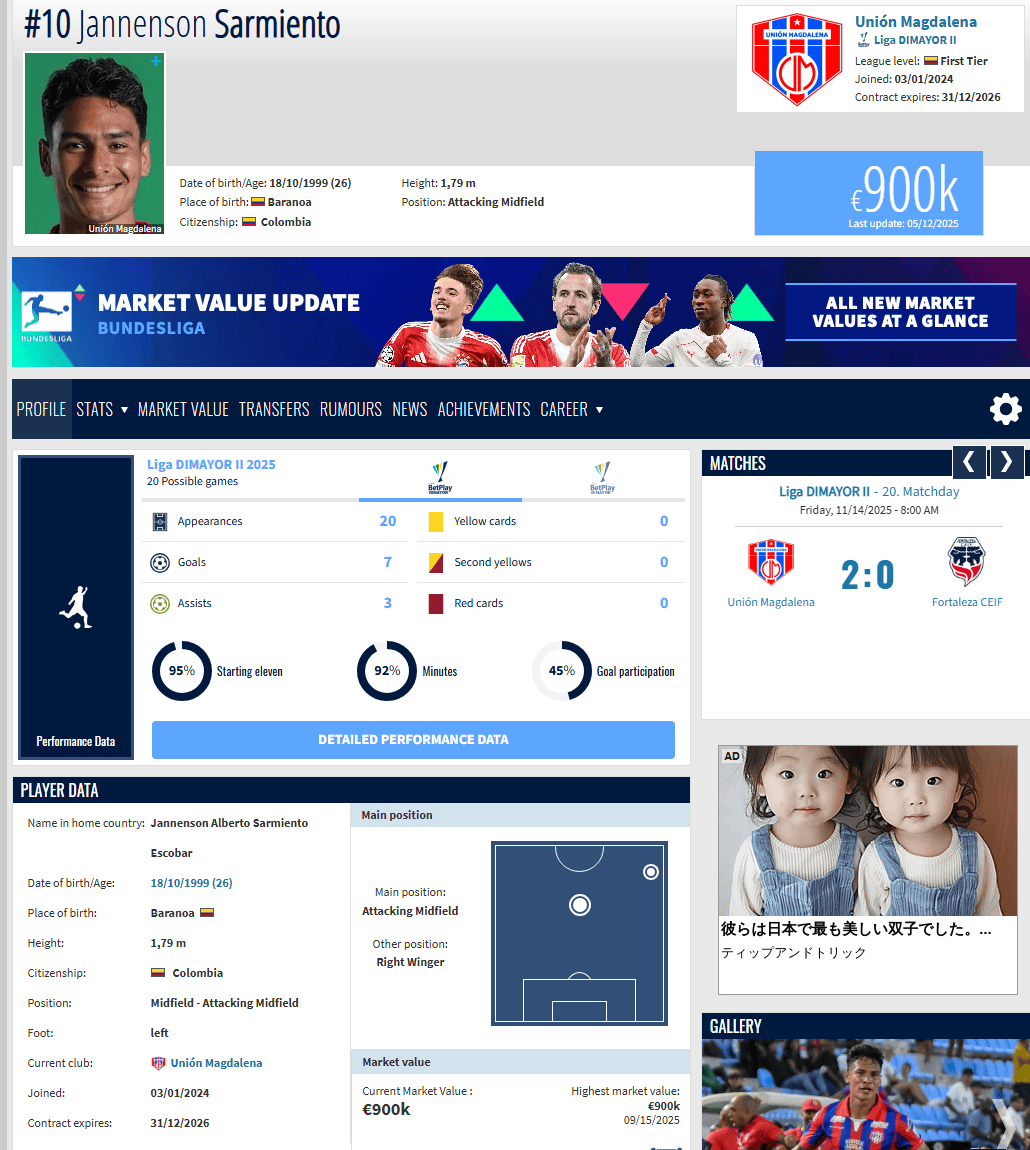 虎扑12月22日讯近年来,詹内森-萨米恩托凭借在马格达莱纳联盟队的出色表现,已成为哥伦比亚足坛最耀眼的球星之一。