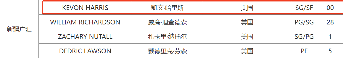 虎扑12月22日讯CBA官方更新外援注册信息:新疆男篮为凯文-哈里斯完成注册。