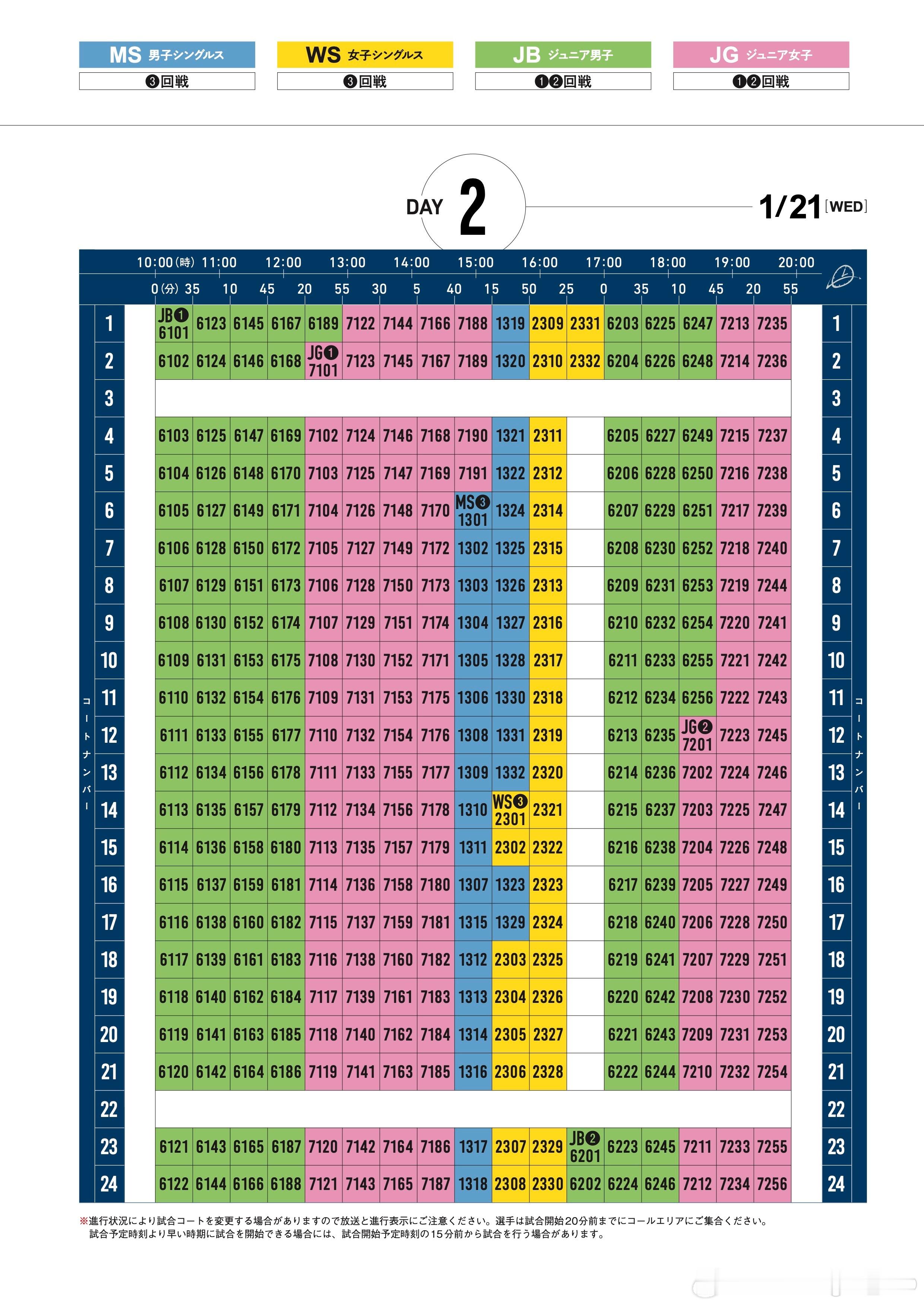 2026年全日锦 时间表&场地球台分布单打 1.20-1.25双打 1.29-2.1