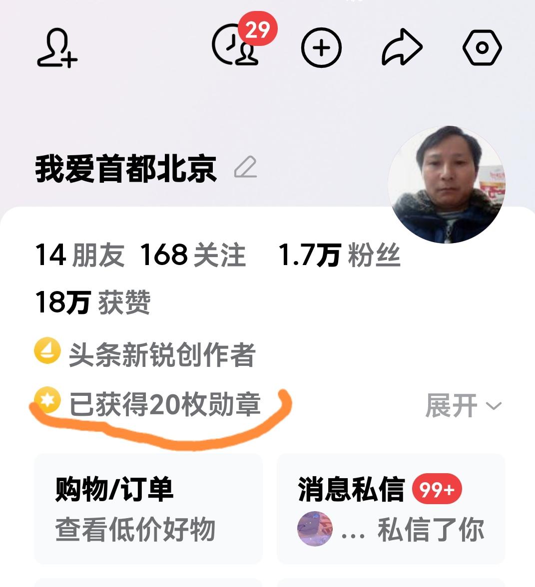 头条的勋章是认真的,可能会成为账号权重的一把“尺子”,直接影响到你的整体流量与单价。 今天头条突然弹出一个弹窗,恭喜我获得“话题达人”的称号,对于这些弹窗我向来是置之不理,但是当我准备创作、打开创作中心页面时,我的主页上头勋章的数量多了一块,我原来是20块,今天变成了21块,这时我突然意示到,头条授于创作者的勋章不是逗着大家玩的,可能是有作用的,勋章的数量有可能成为今后头条衡量账号权重高低的一个重要依据,其至会直接关系到今后作品的流量与单价的分配级别,决定创作者们的收益高低。 头条共有27块勋章,每块勋章都是创作者劳动的印记,是创作们对头条贡献的真实数据,头条把这些数据作为对创作者回报的重要依据也合情合理! 我现在只有21块勋章,距离27块还非常遥远,可能每拿到一块都需付出艰辛的努力,没有拿到二十五、六块勋章,就想要高回报确实也不合理。 友友们,你们的勋章有多少块,如果你们有二十五、六块勋章,甚至是大满贯,估计新的一年里,你们会有大惊喜!