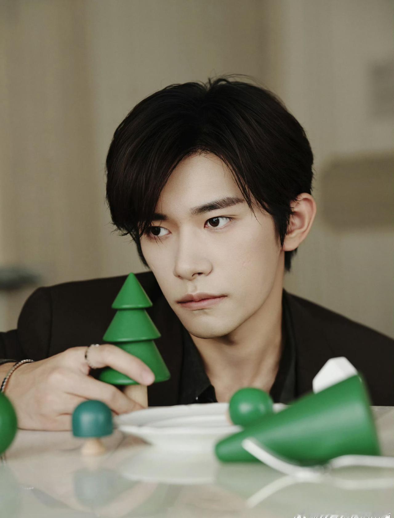 易烊千玺的气质比较清冷,搭配上这种深色系的西装和撞色内搭后,冷色调中带了一点暖意