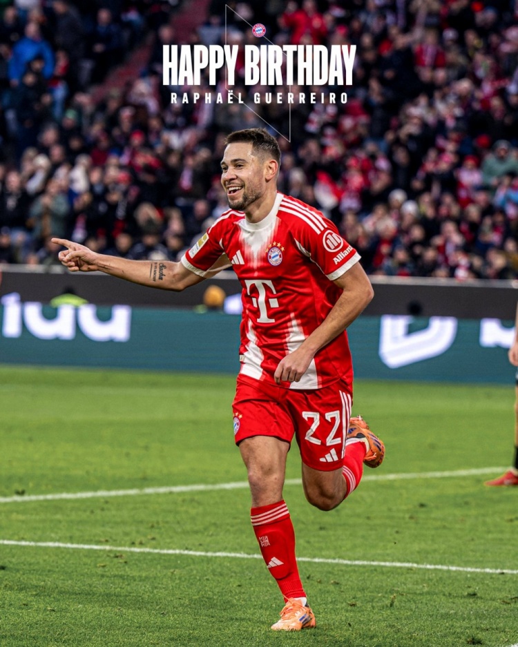 拜仁官方社媒晒出为格雷罗制作的生日海报,配文:“生日快乐,拉斐尔(格雷罗)!格雷罗今天迎来了32岁生日!”