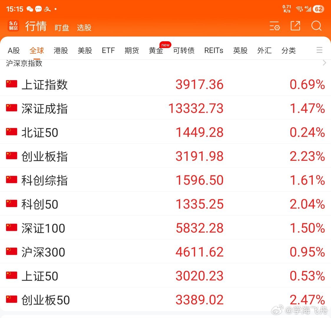 今天A股大盘沿袭了上周五上扬的走势:东方财富App显示的10项指数全体上涨收红,上证指数涨0.69%至3917.36点,再次站上了3900点关口,其中尚有5项指数大涨1.47%以上。个股走势比上周五稍弱: 沪深京三交易所中,上涨的股票有2872支,比上周五少1458支,其中涨幅在7%以上的有165支,比上周五多26支; 持平的股票有184支, 比上周五多121支; 下跌的股票有2219支,比上周五多1339支,其中跌幅在7%以上的有28支,比上周五多10支。三个市场全天的成交量为18824亿元,比上周五增量1335亿元。今天A股大盘从整体来看,入市资金额增加,多头占优,上证指数且站上了3900点关口,如持续这种走势,或许会走出一波年末反弹行情