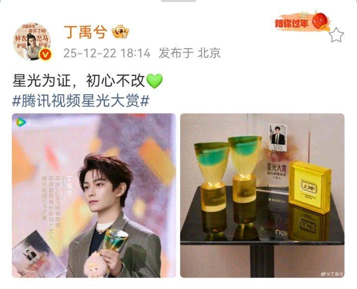 丁禹兮星光为证初心不改丁禹兮晒奖杯恭喜!