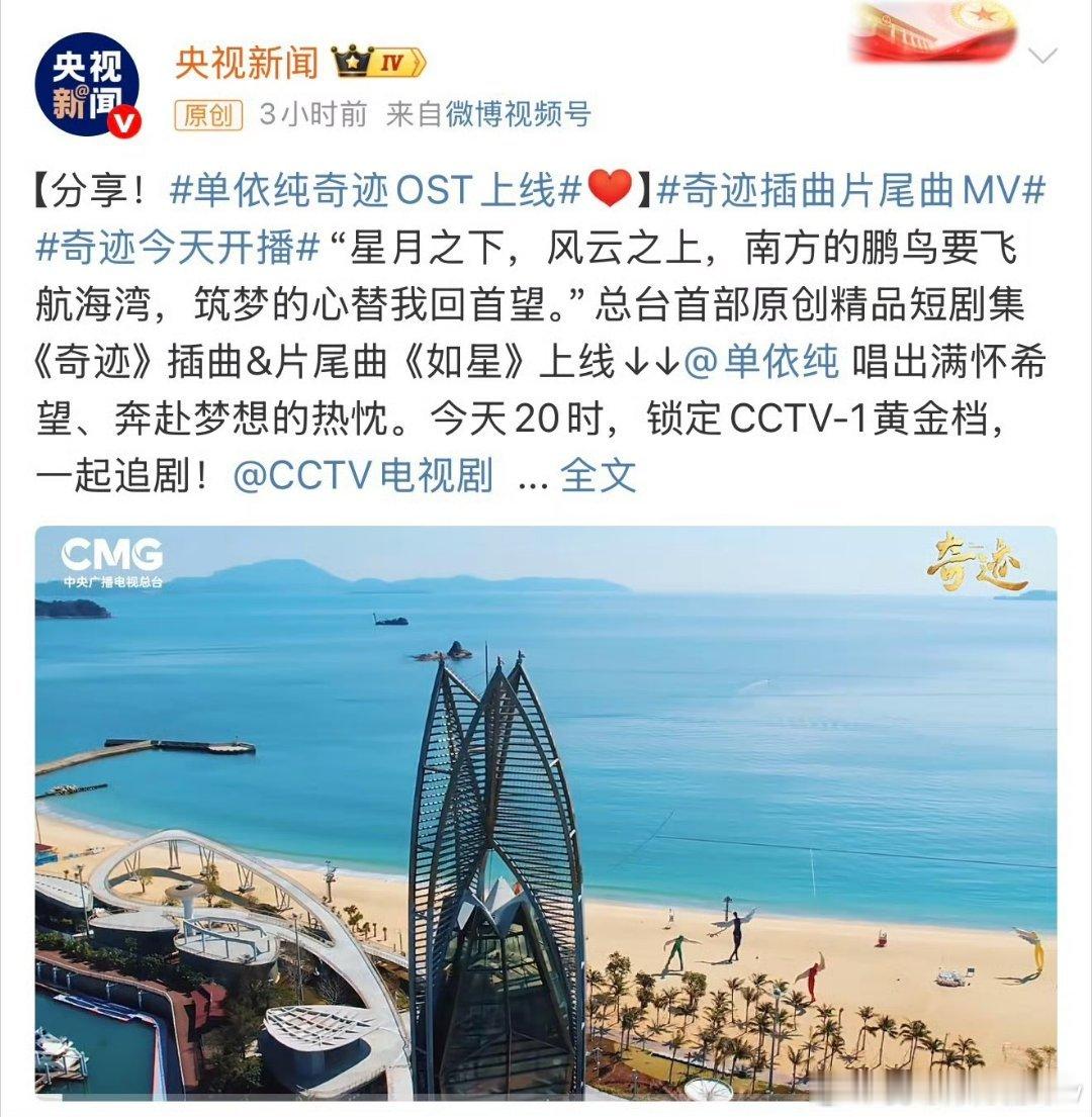 央视首部短剧片尾曲是单依纯唱的 单依纯献唱央视首部短剧《奇迹》 片尾曲和插曲《如星》搭配剧情MV 唱出一代代人的奋斗与梦想