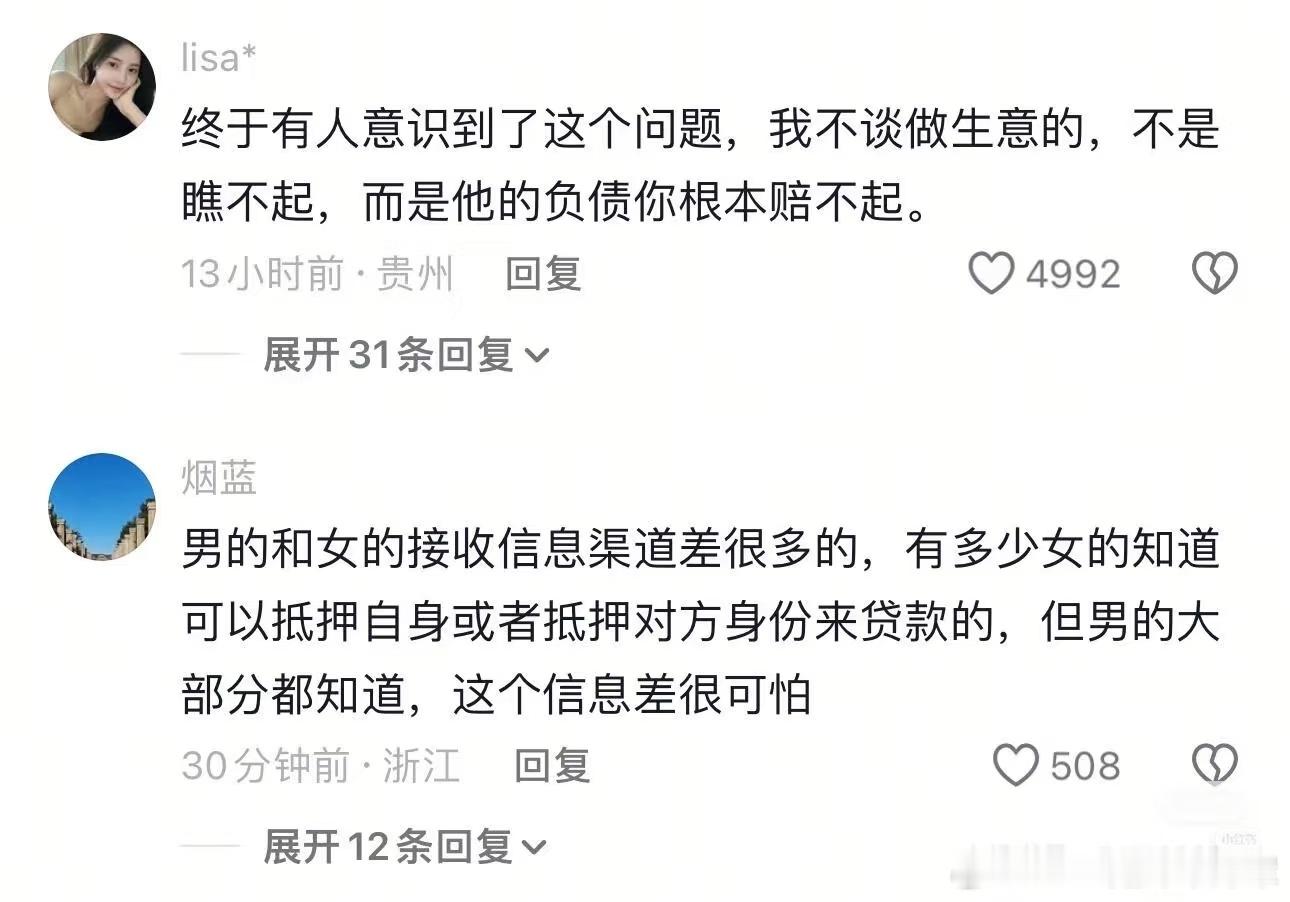参考钟镇涛和章小蕙,男的不还钱当老赖,女的拼命还自己的那份