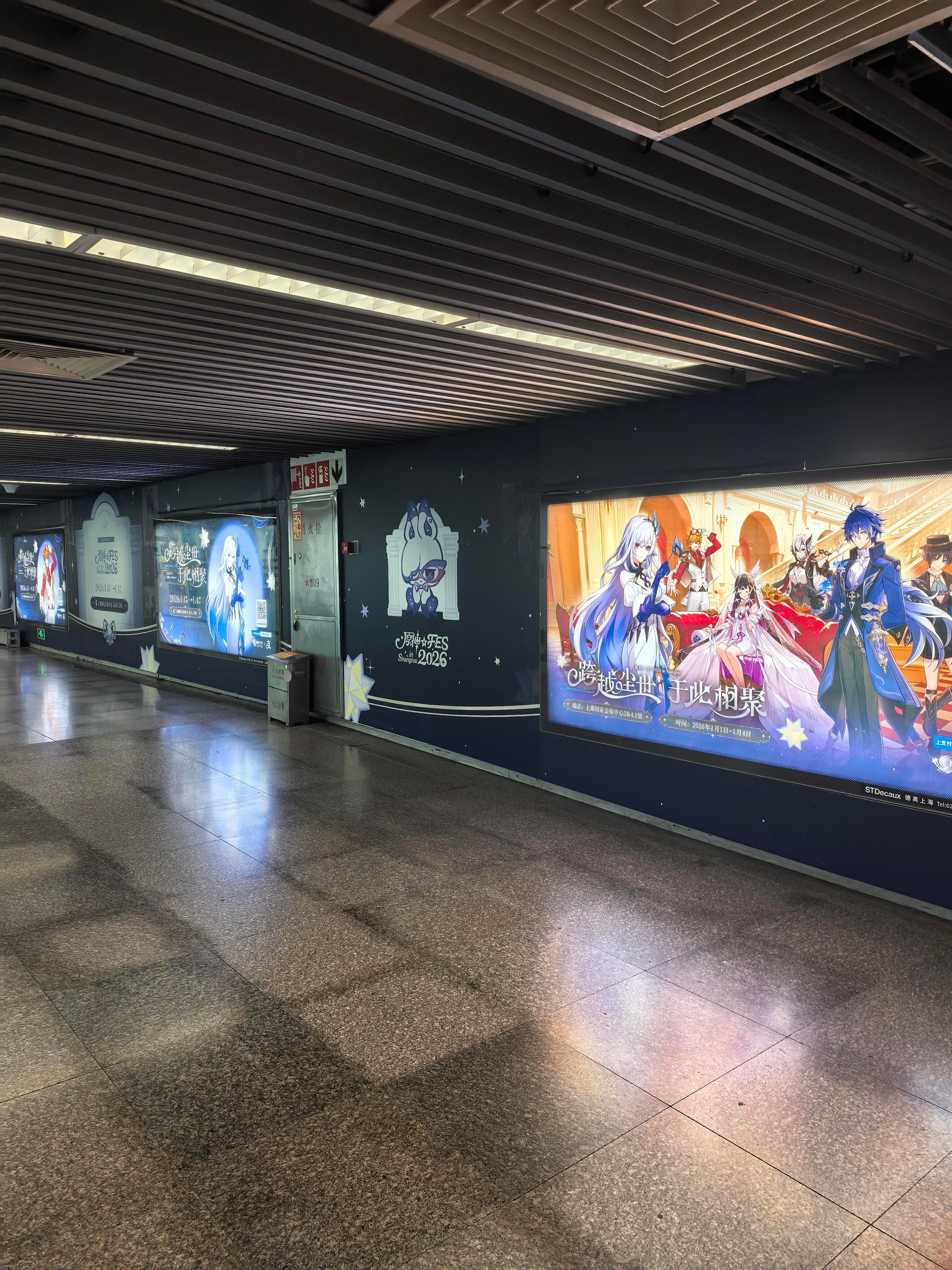 为了迎接原神fes上海成为了巨大的原神痛城!【原神专属地铁痛站打卡点】地址:上海人民广场地铁站1号口迪美前的那条通道