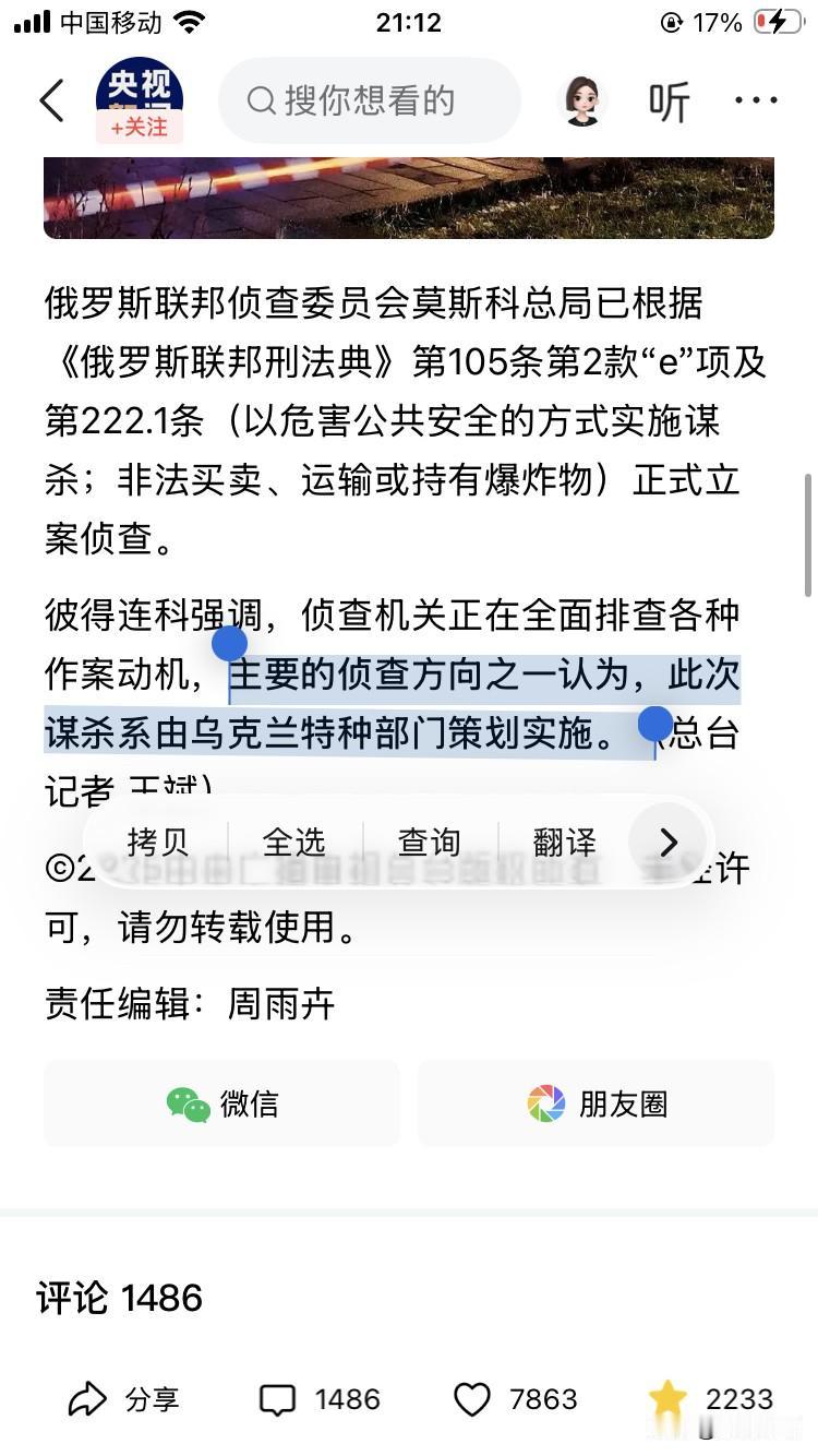 简讯!当地时间22日,俄罗斯一中将在汽车炸弹爆炸中身亡。 姓名:萨尔瓦罗 职务:俄武装力量总参谋部作战训练局长 军衔:中将 事发地点:莫斯科南部 事件:一辆汽车底盘下安装的爆炸装置被引爆 结局:萨尔瓦罗夫因伤势过重抢救无效死亡 主要侦查方向之一:俄罗斯联邦侦查委员会发言人彼得连科当天表示,此次谋杀系由乌克兰特种部门策划实施。