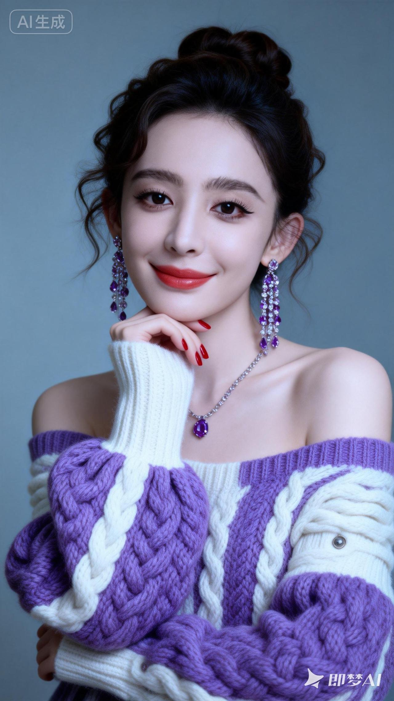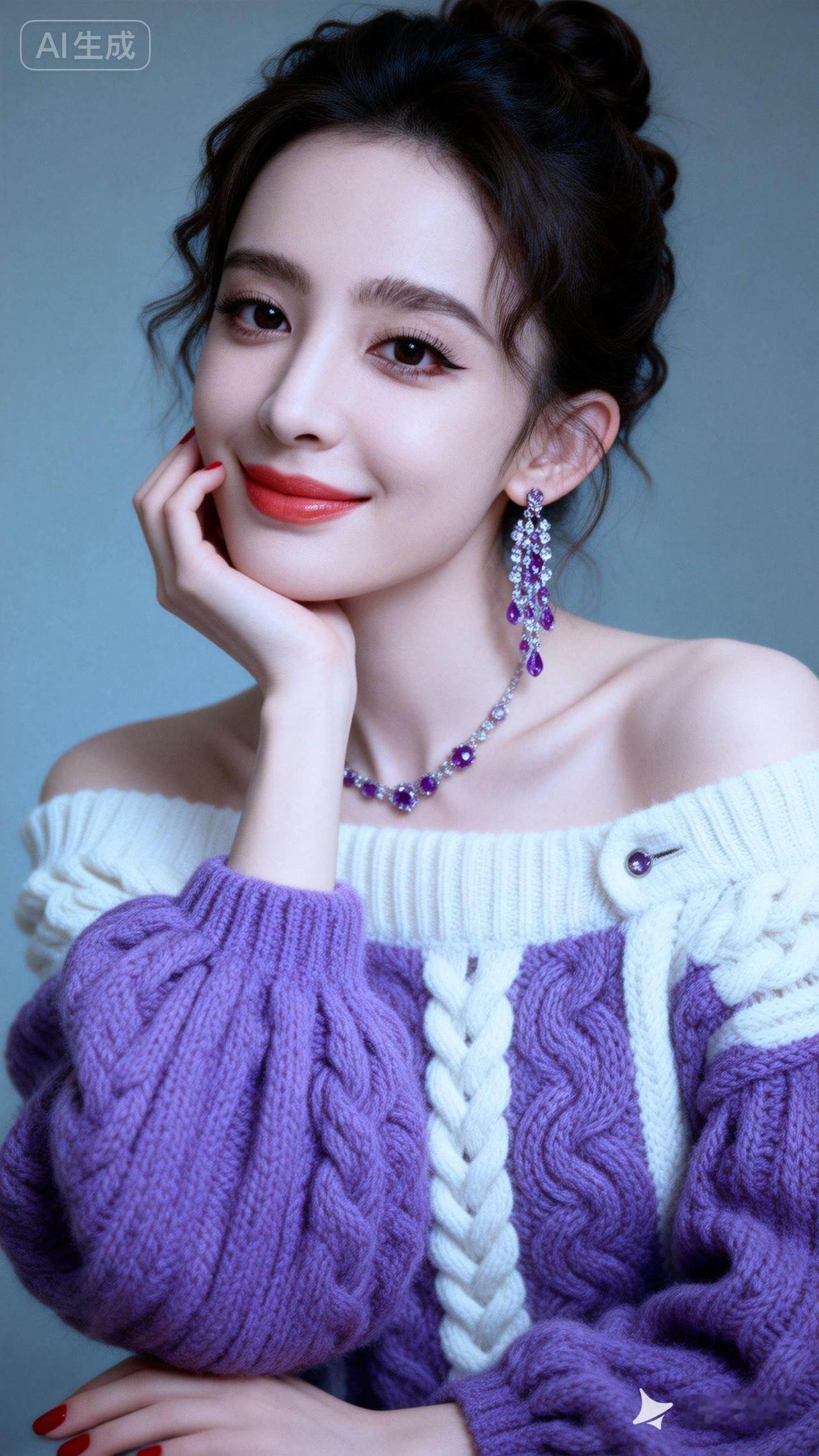 甜美少女风,紫色毛衣搭配珍珠项链,温柔可人!