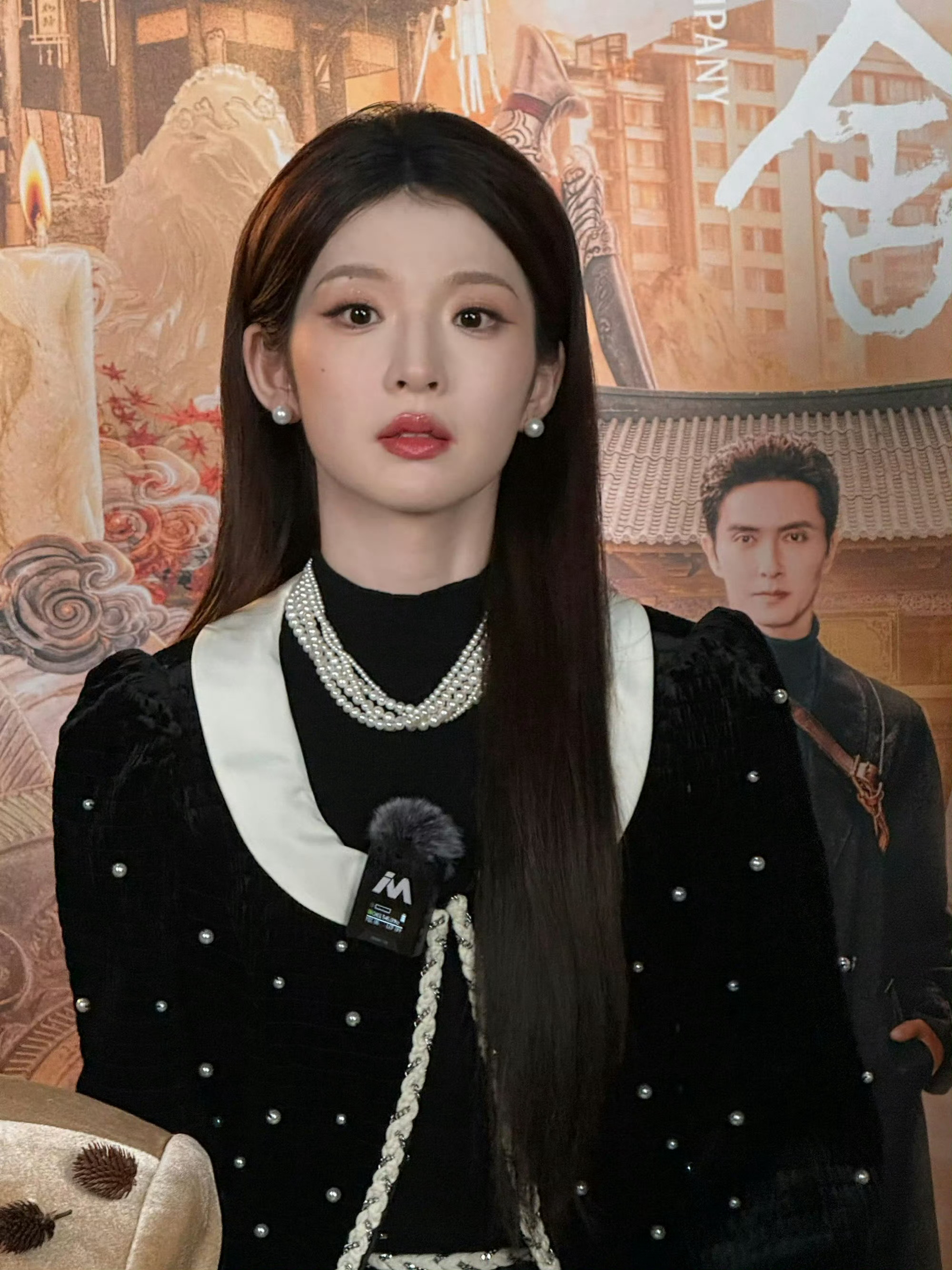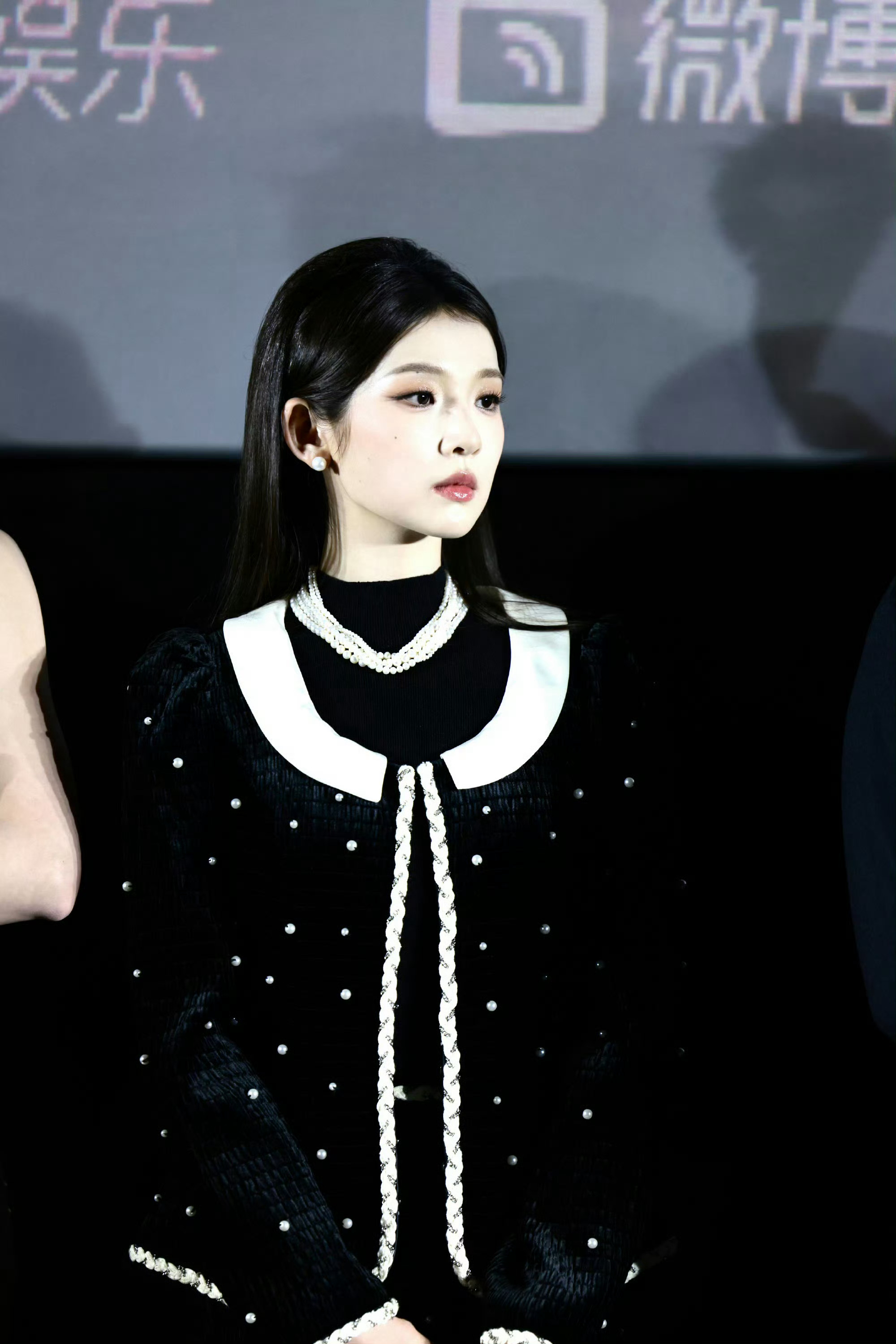 张淼怡好甜一个妹宝今天是珍珠少女张淼怡黑长直+珍珠套装好温婉千金,笑起来完全是甜