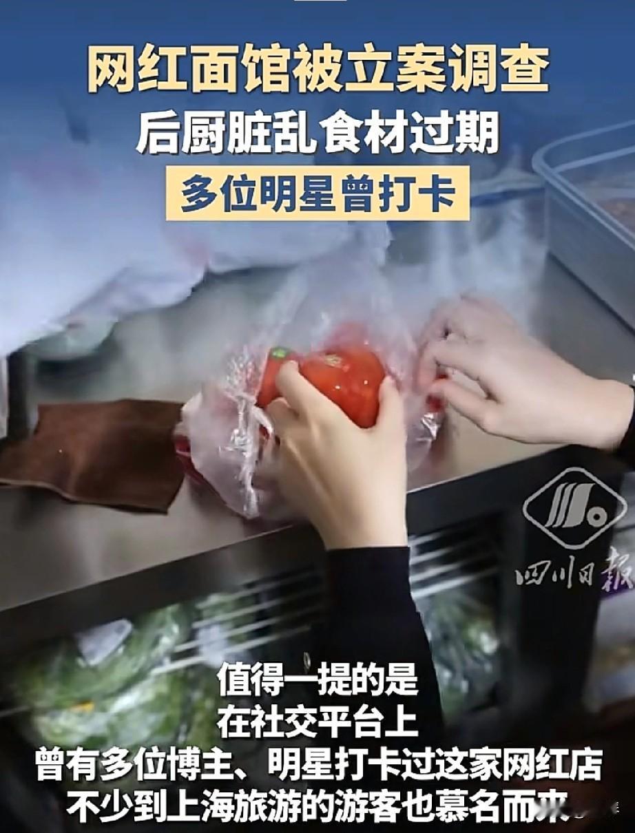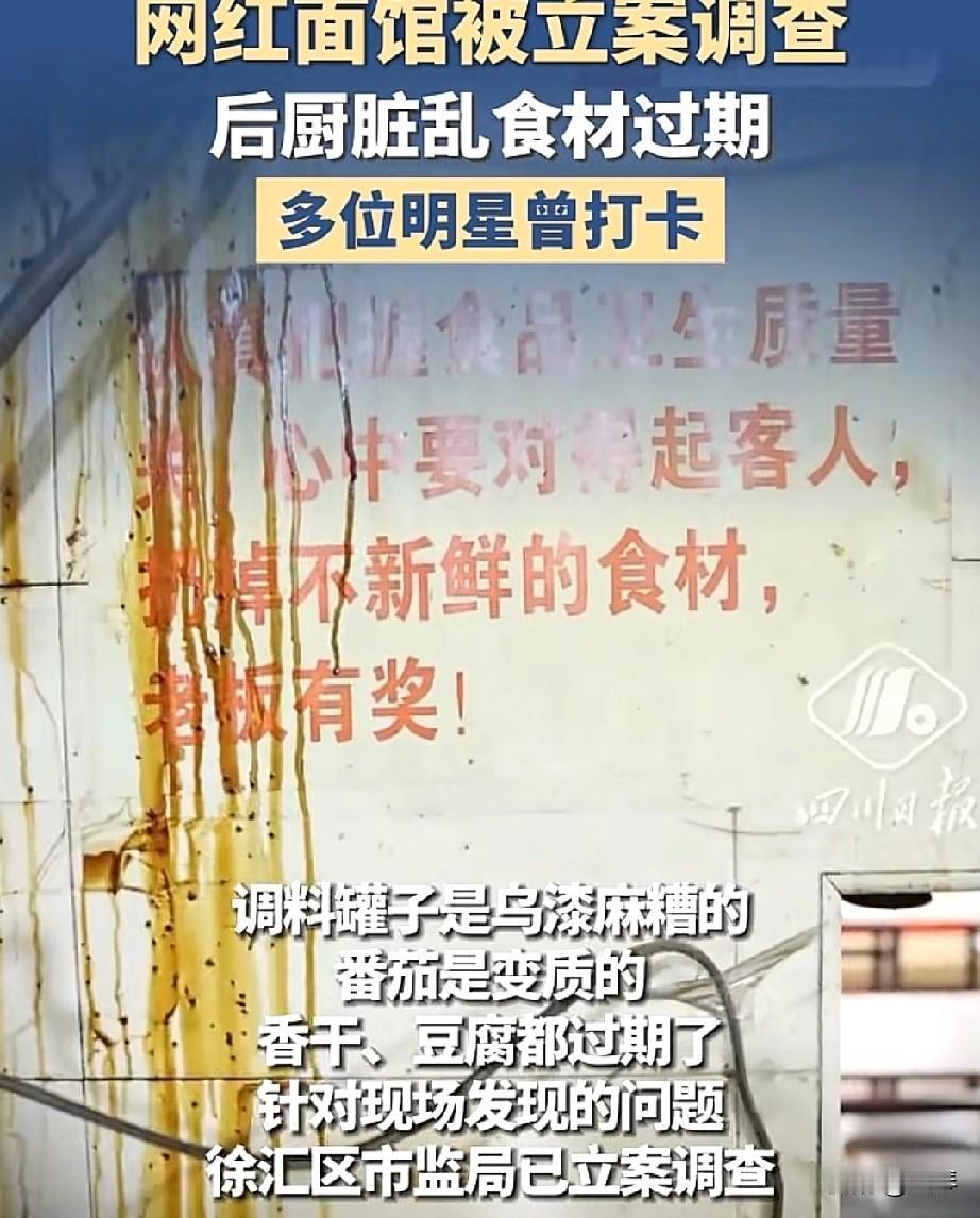 明星、博主打卡的网红面馆翻车,一碗面卖100元的价格,被爆多处卫生不合格,食品过期等问题。 上海网红黄鱼面馆翻车,后厨脏乱食材过期,明星打卡也救不了。 真的被上海这家网红黄鱼面馆给整吐了。之前刷到好多博主、明星去打卡,说他家黄鱼面多正宗多好吃,我还特意攒着假期跑去上海,花55块钱吃了一碗招牌黄鱼面,现在想想胃里都翻江倒海。 结果这两天就刷到新闻,这家明呈黄鱼面馆被徐汇区市监局立案调查了,后厨的画面简直辣眼睛!调料罐子乌漆麻黑的,一层油垢看着就没清理过,冰柜里的番茄都变质发霉了,香干、豆腐更是直接过了保质期,就这么摆在那儿准备给顾客吃。 更离谱的是,店里连消毒柜的插头都找不着,卫生死角一堆,地面都包浆了,这哪是网红面馆,分明是“脏乱差”重灾区。 还记得当时去吃的时候,店里人挤人,老板那副“爱来不来、不接受差评”的拽样,现在看来全是虚的!一碗面卖55块,最贵的还敢要100块,就用这种过期变质的食材糊弄人? 那些去打卡的明星博主,真的尝不出食材有问题吗?还是说只是走个过场拍拍照就走了? 咱普通人出去吃个饭,图的是好吃又安心,不是花高价吃“科技与狠活”+过期食材啊!网红店的套路真的太深了,仗着有明星打卡、人设营销,就把食品安全抛到脑后。希望监管部门能严查到底,别让这种黑心网红店再祸害消费者了。 也提醒各位姐妹,以后别再被明星打卡的网红店忽悠了,吃之前真得擦亮眼睛。 上海 网红打卡地 食品安全 食品安全 翻车 翻车