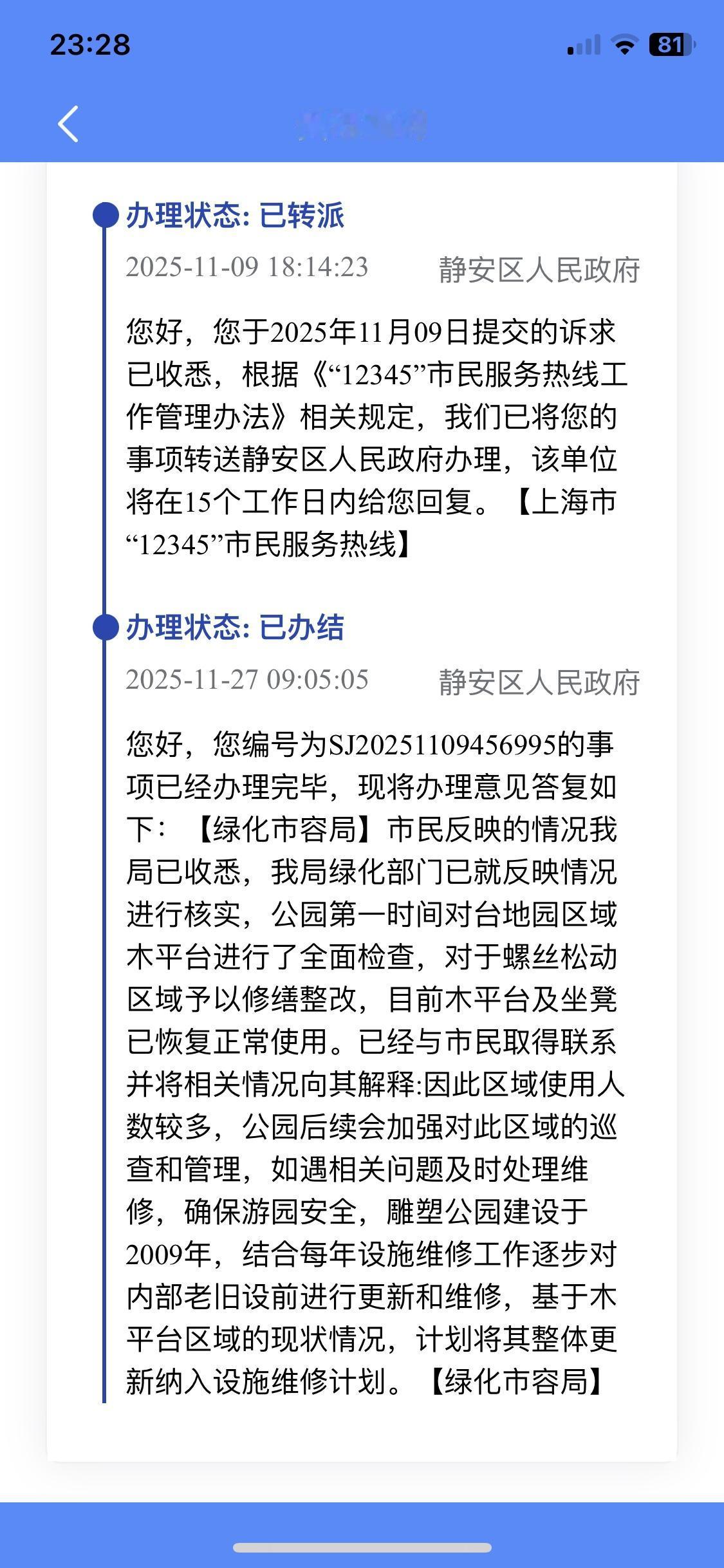静安雕塑公园的滨水步道和座椅上到处凸起松动的螺钉。一看就是安装施工不合规,市民走过震动就松动突出,老人孩子走过去非常危险。看到回复,还是提醒大家注意安全。这座城市方方面面,遇到问题发现问题,请一定拿起手机用12345提出问题。抱怨一万次不如动手改变一次。