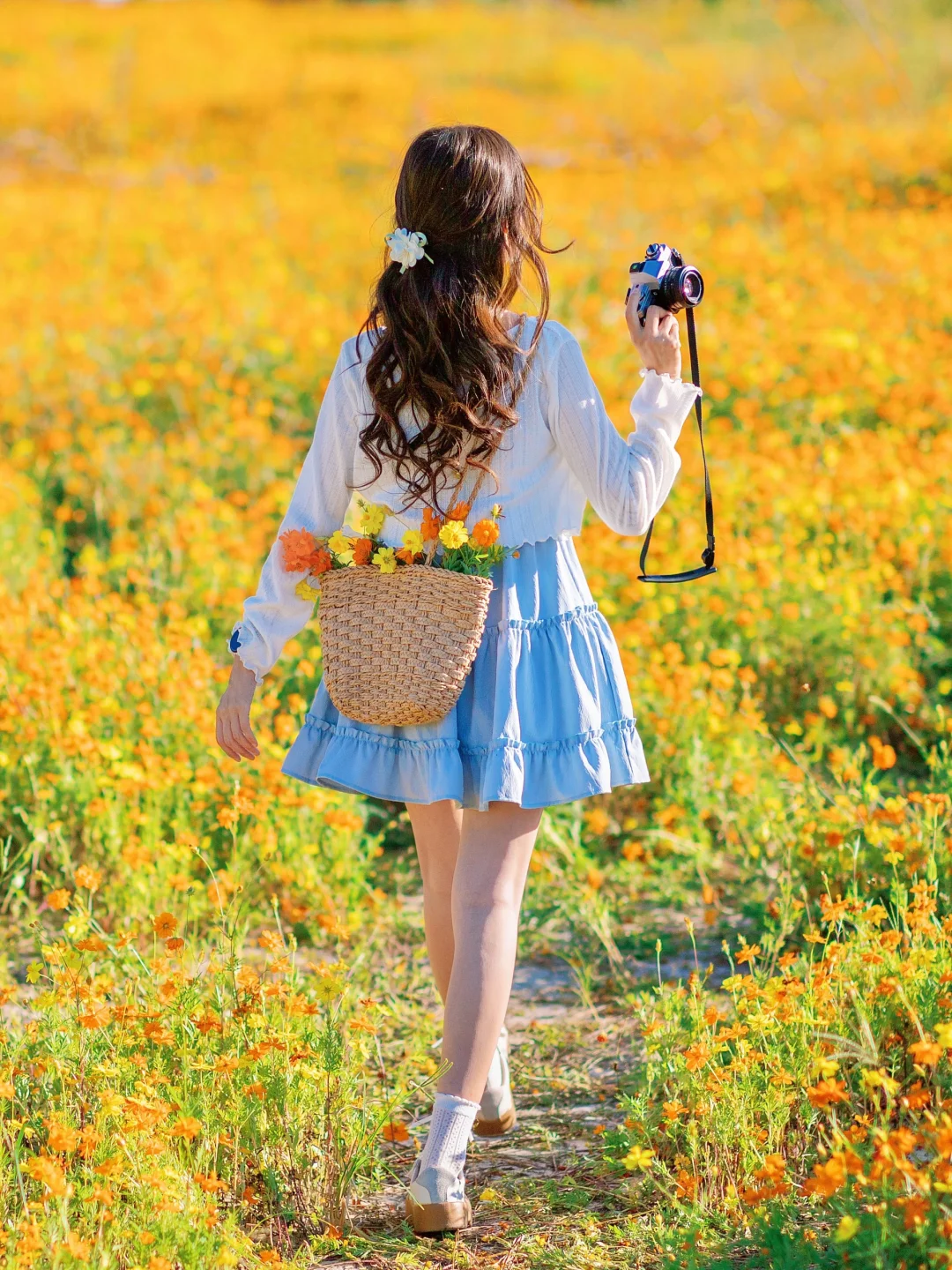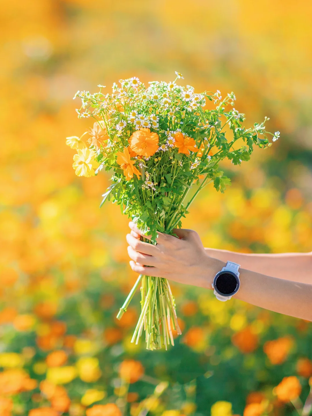 拍摄色彩浓郁的花海时,服装搭配以清新简约为主,白色是永远不会出错的颜色啦,搭配蓝色吊带裙,恰好和花海的色彩形成撞色的效果,更能凸显画面中的人物。除了服装搭配,其他细节也不容忽视哦~在京东运动,码字【秋游计划】入了这款高驰的双频全星座运动手表,它不仅是我运动时的好搭子~拍照时用它播放音乐触手可及,瞬间让整个人放松起来,拍照时更有状态哦~