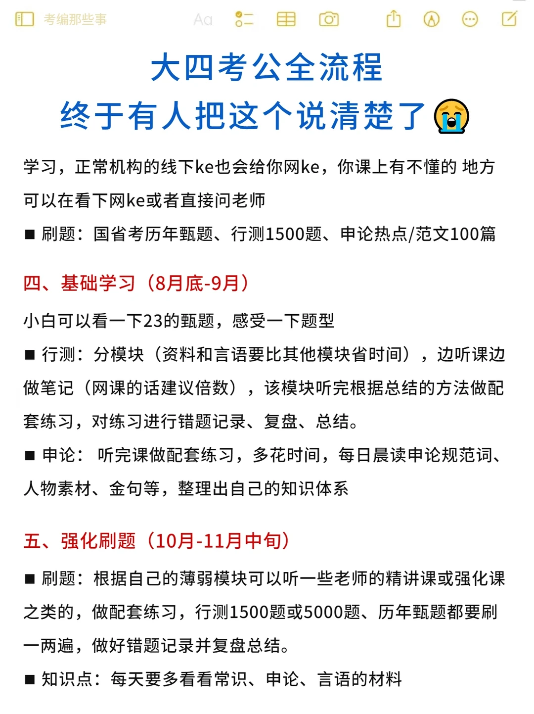 ◼ 行测:分模块(资料和言语要比其他模块省时间),边听课边做笔记(网 ke的话建议倍数),该模块听完根据总结的方法做配套题目,进行错题记录、复盘、总结。