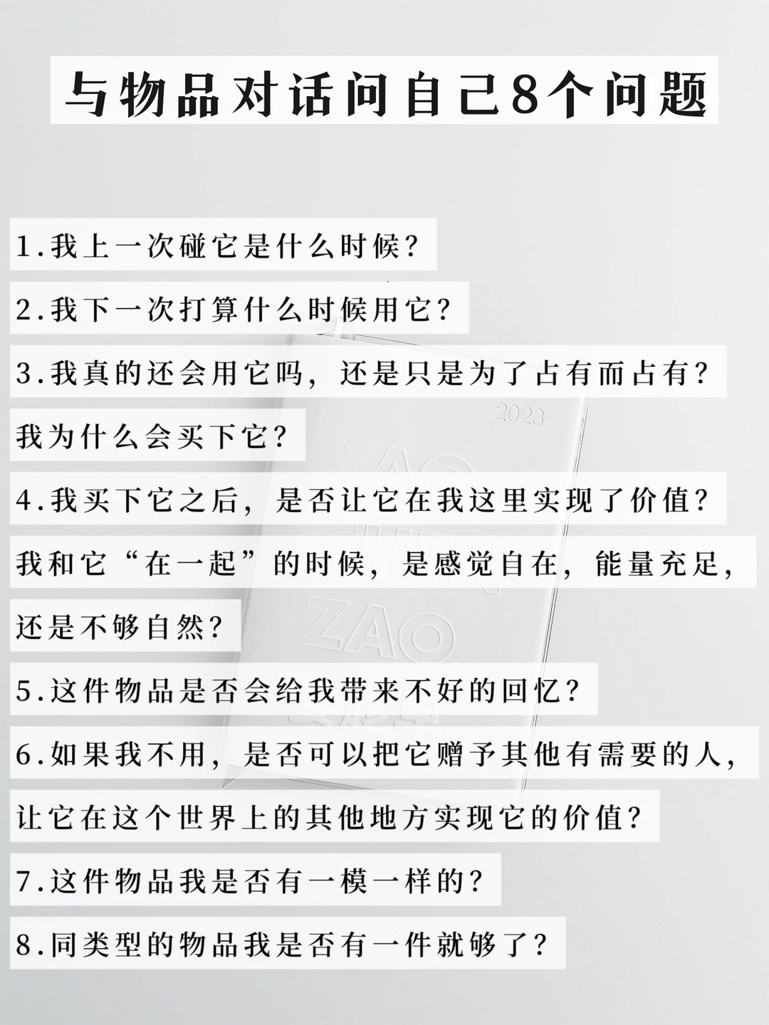 在统计物品的过程中,很大的愉悦感则来自和物品的对话,不急不躁,真正地享受这个过程。在这个过程中,你可以翻出你要记录的某个物品问自己8个问题。