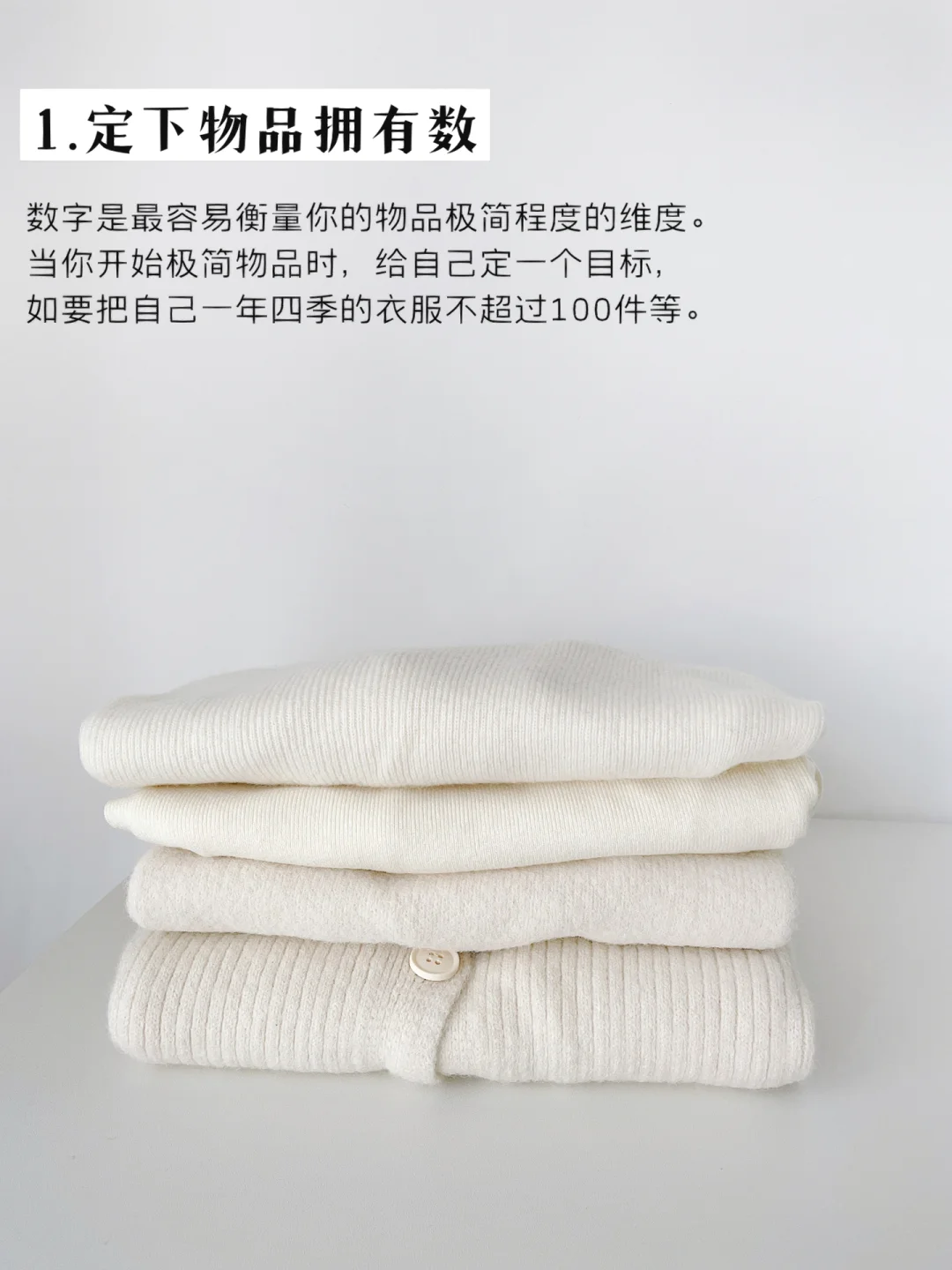 数字是zui容易衡量你的物品极简程度的维度。当你开始极简物品时,给自己定一个目标,如要把自己一年四季的衣服不超过100件等。