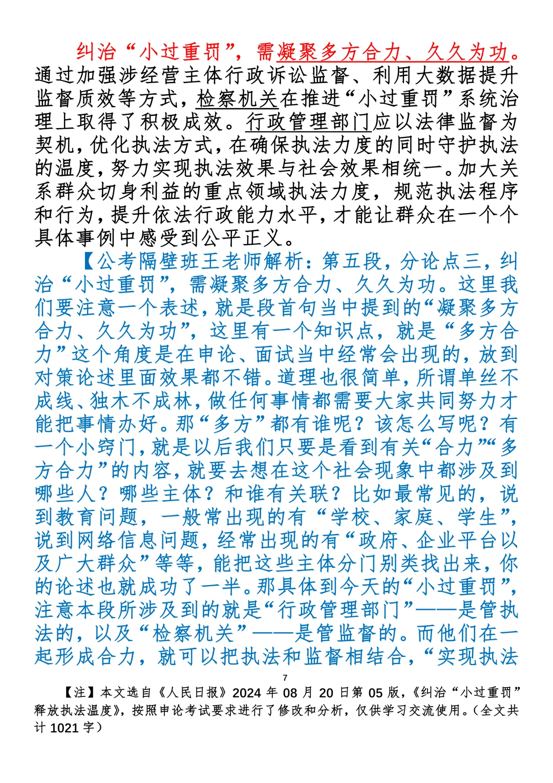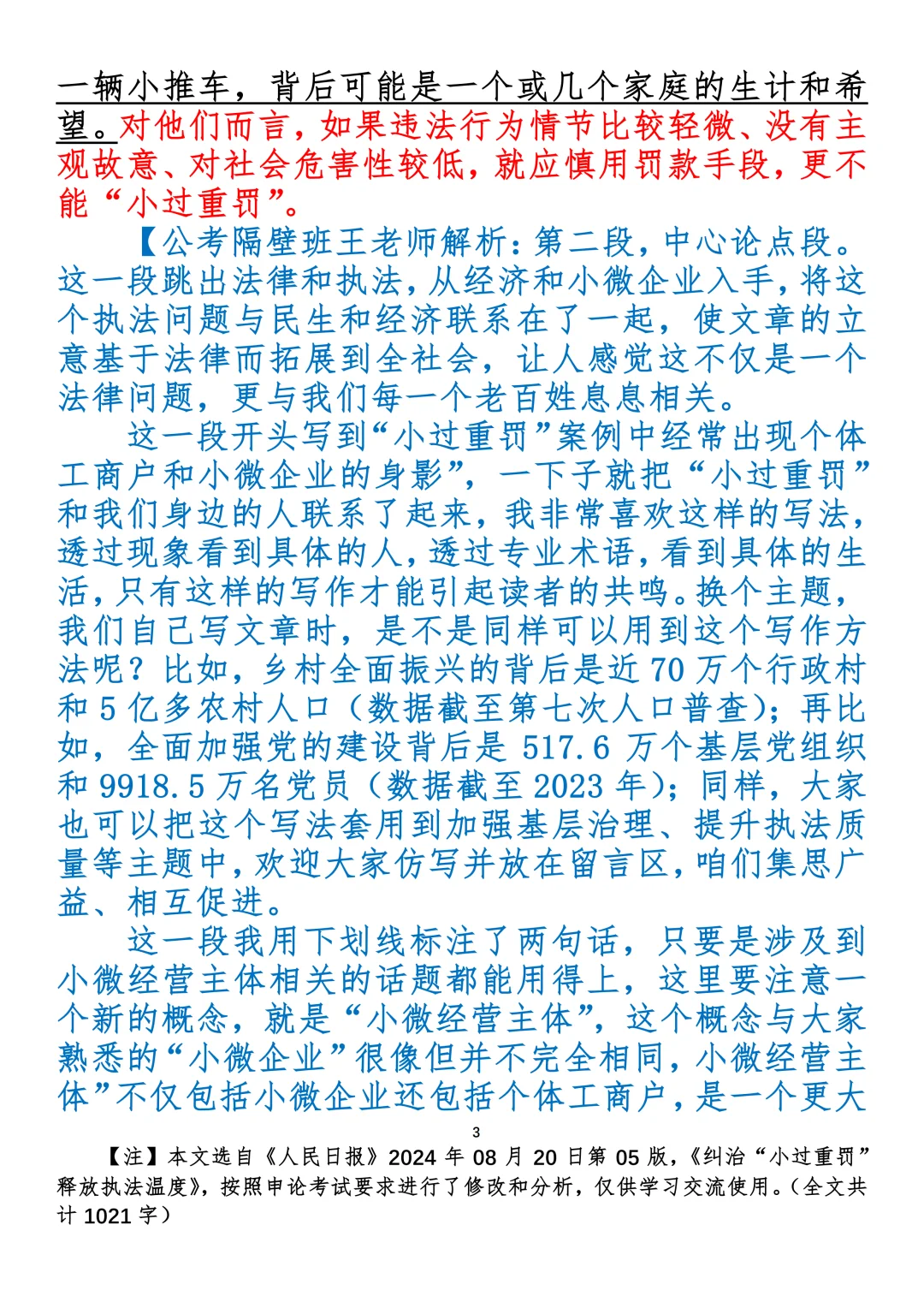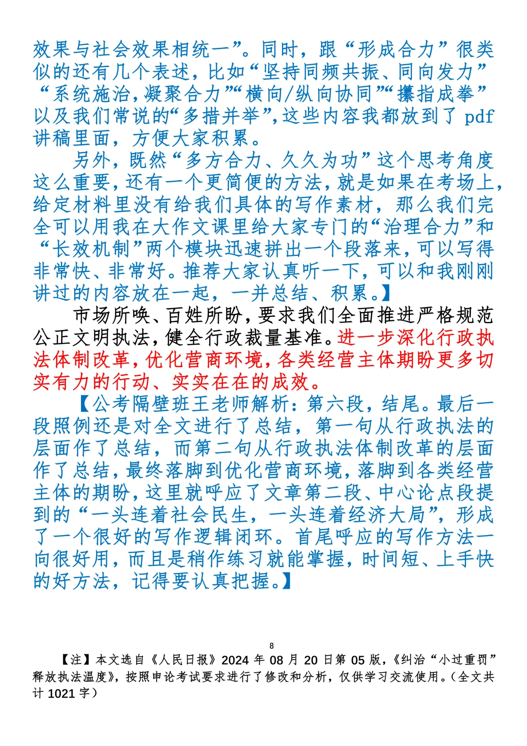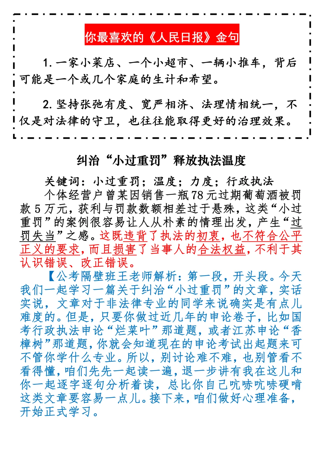 如何抄写:每日抄写文章发在“公考隔壁班王老师”账号,红色字是重点句和结构句,黑色字是正文,蓝色字是解析,大家抄写时不必抄蓝色字。建议先通读全文,做到心中有数再开始抄写,效果会更好。关于文章:抄写文章来源于人民日报,但每篇文章我都根据申论考试要求进行了修改:一是重写或修改开头、结尾;二是统一段首句句式结构;三是调整段落字数,使文章结构更均衡;四是简化复杂长难句,使之更具可模仿性。每篇文章无论修改多少,都是基于申论考试要求,毫无对人民日报文章品评之意。(此处致敬人民日报)