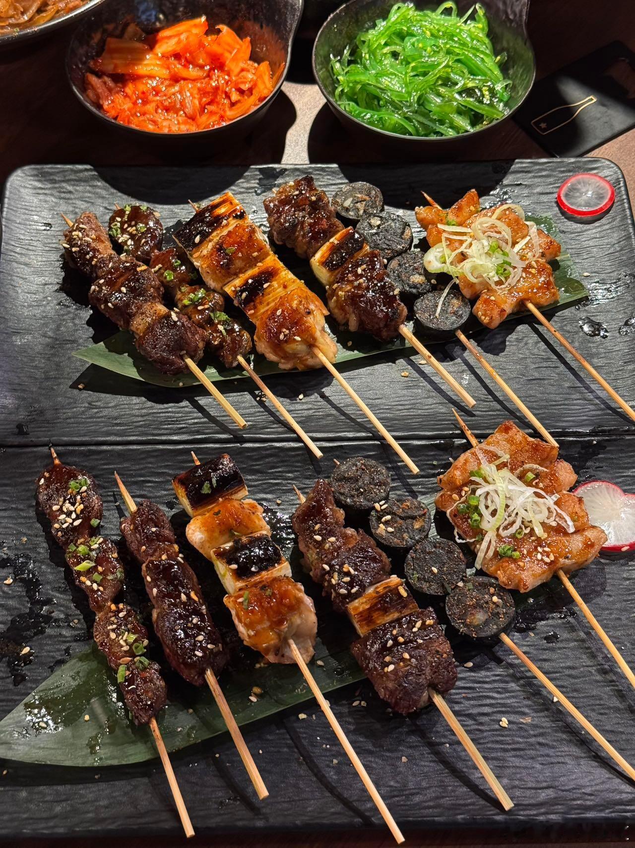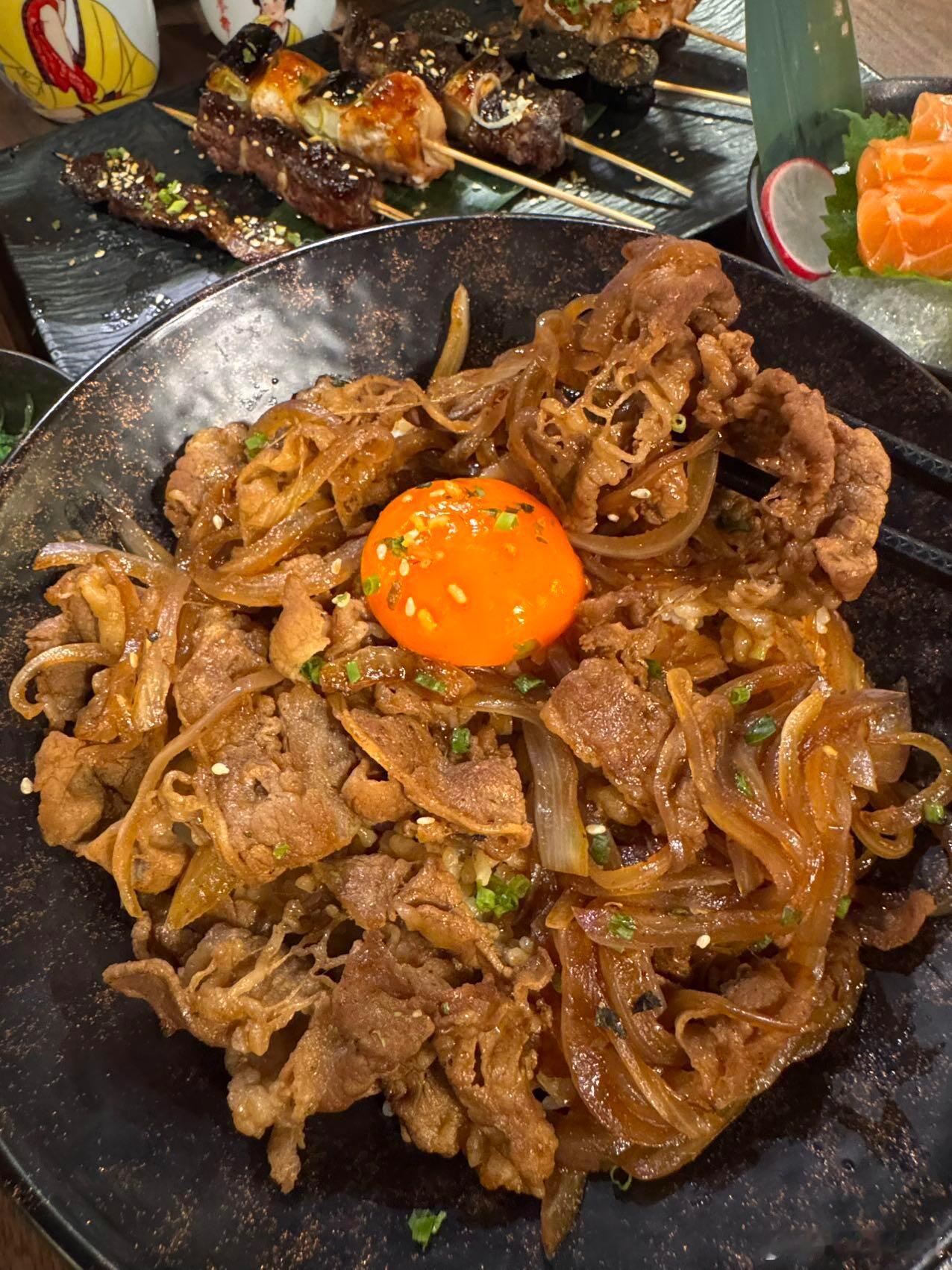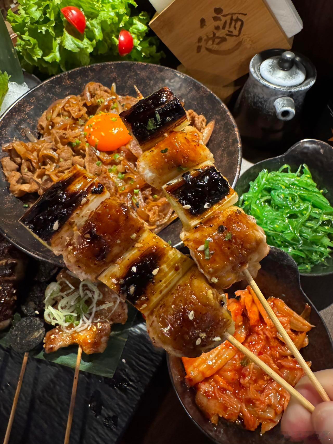 谁懂啊家人们!!一人食的快乐在这里直接拉满~社恐人士的福音阿!!简直就是!点上个单人餐~微醺一下!!不要太快乐~·✔️京葱和牛肉串✔️猪颈肉✔️挪威三文鱼✔️雪花肥牛无菌蛋饭套餐里搭配的都挺合适的!超爱他们家烧鸟!!很正宗!!!肥牛饭量也是足足的!一口下去超满足!!!店内布置圣诞🎄氛围也是很浓郁呀来打卡拍照也是嘎嘎出片!
