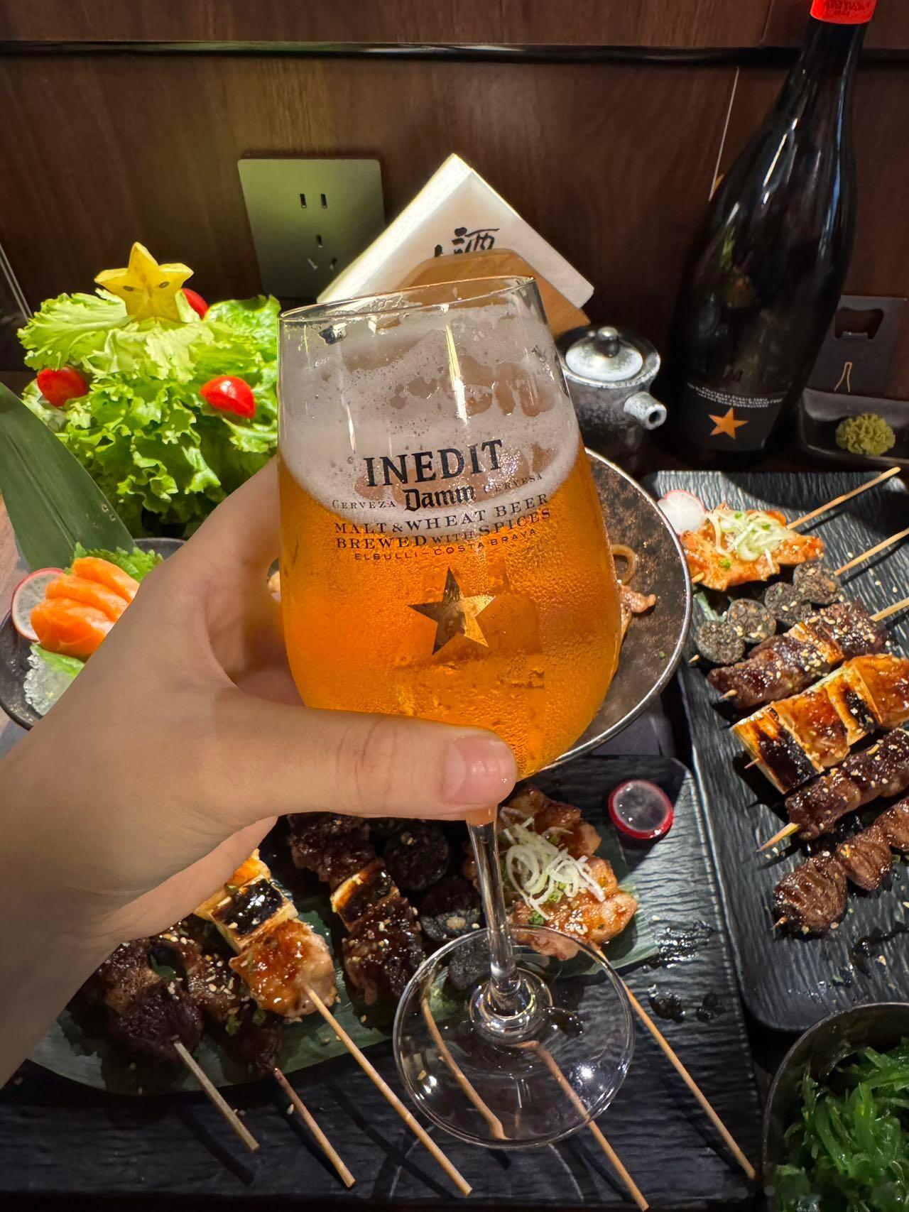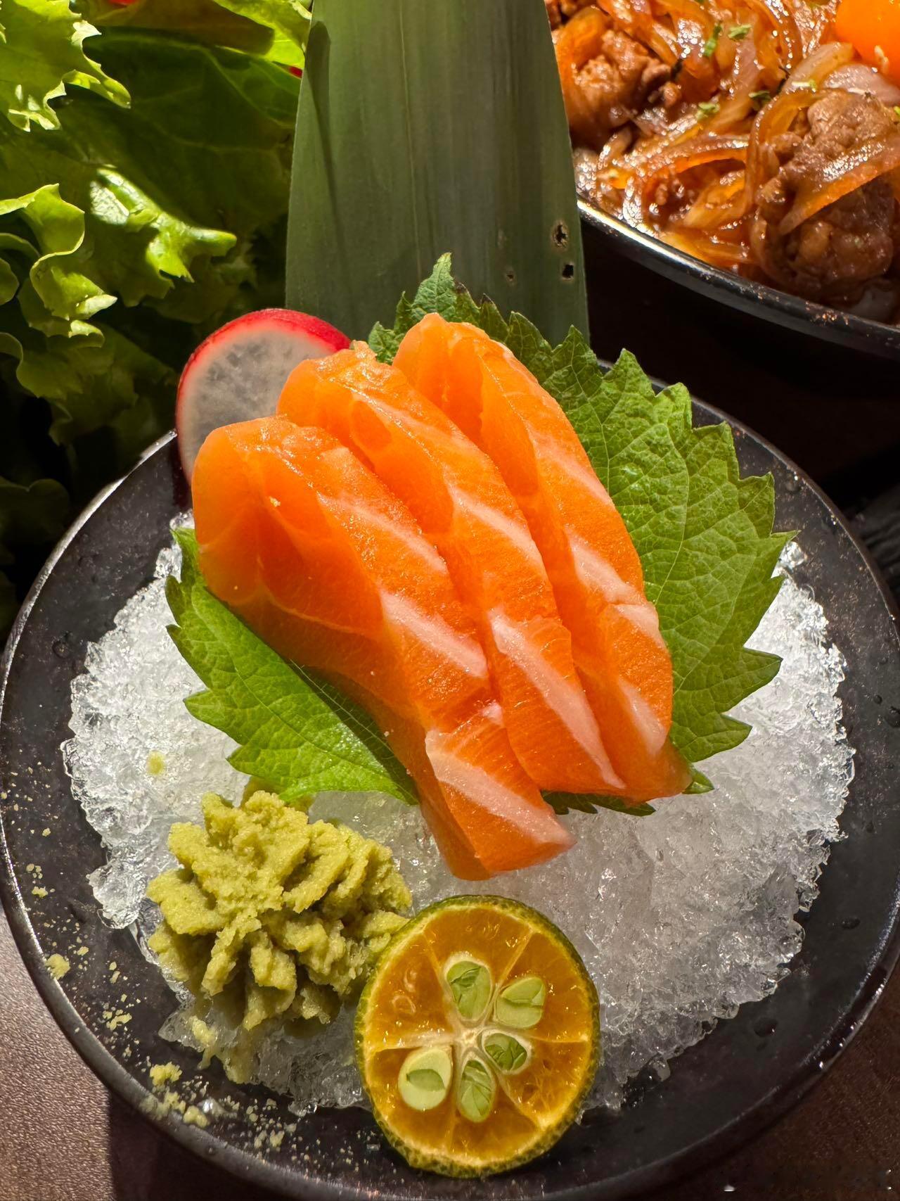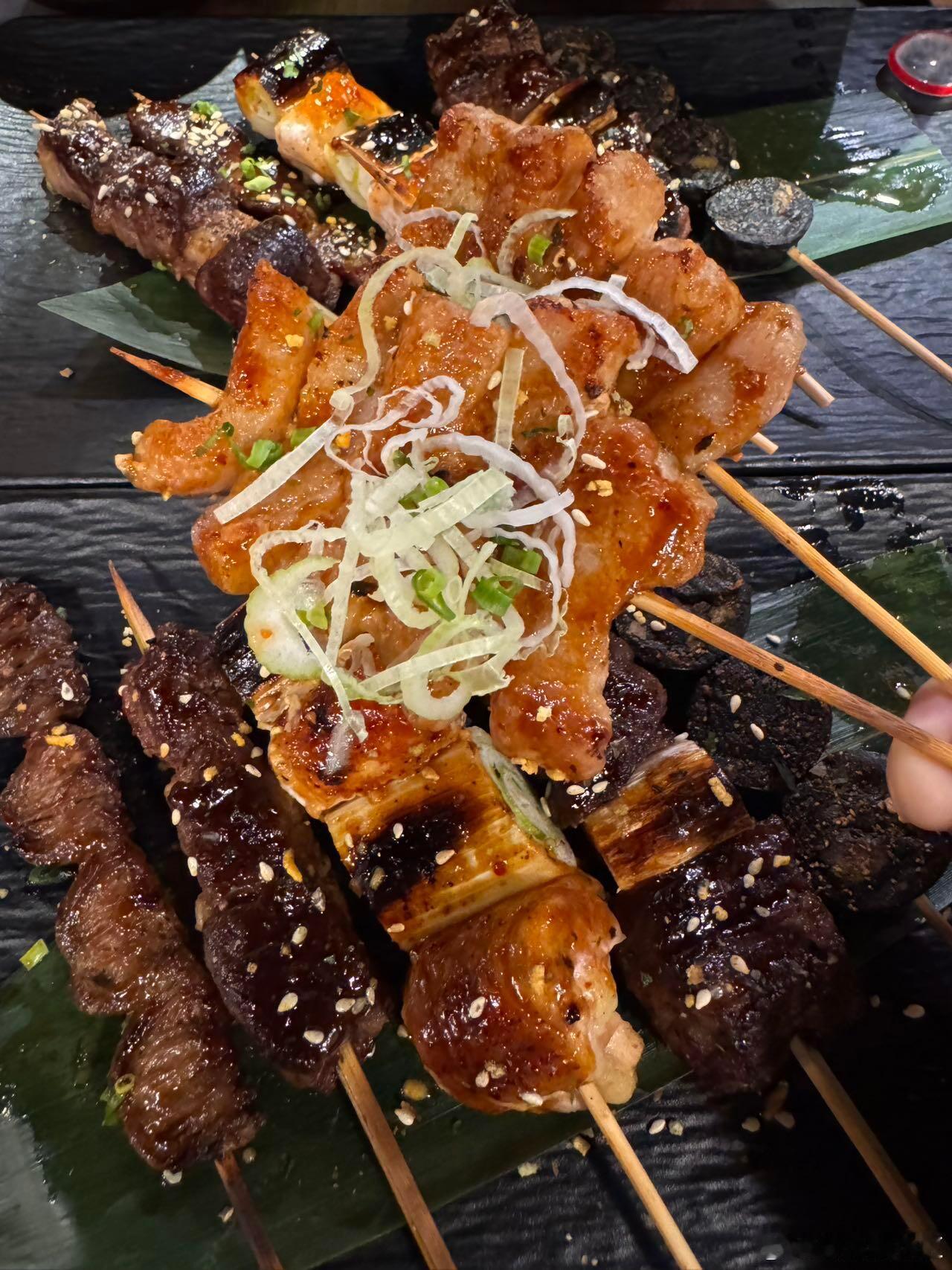 谁懂啊家人们!!一人食的快乐在这里直接拉满~社恐人士的福音阿!!简直就是!点上个单人餐~微醺一下!!不要太快乐~·✔️京葱和牛肉串✔️猪颈肉✔️挪威三文鱼✔️雪花肥牛无菌蛋饭套餐里搭配的都挺合适的!超爱他们家烧鸟!!很正宗!!!肥牛饭量也是足足的!一口下去超满足!!!店内布置圣诞🎄氛围也是很浓郁呀来打卡拍照也是嘎嘎出片!