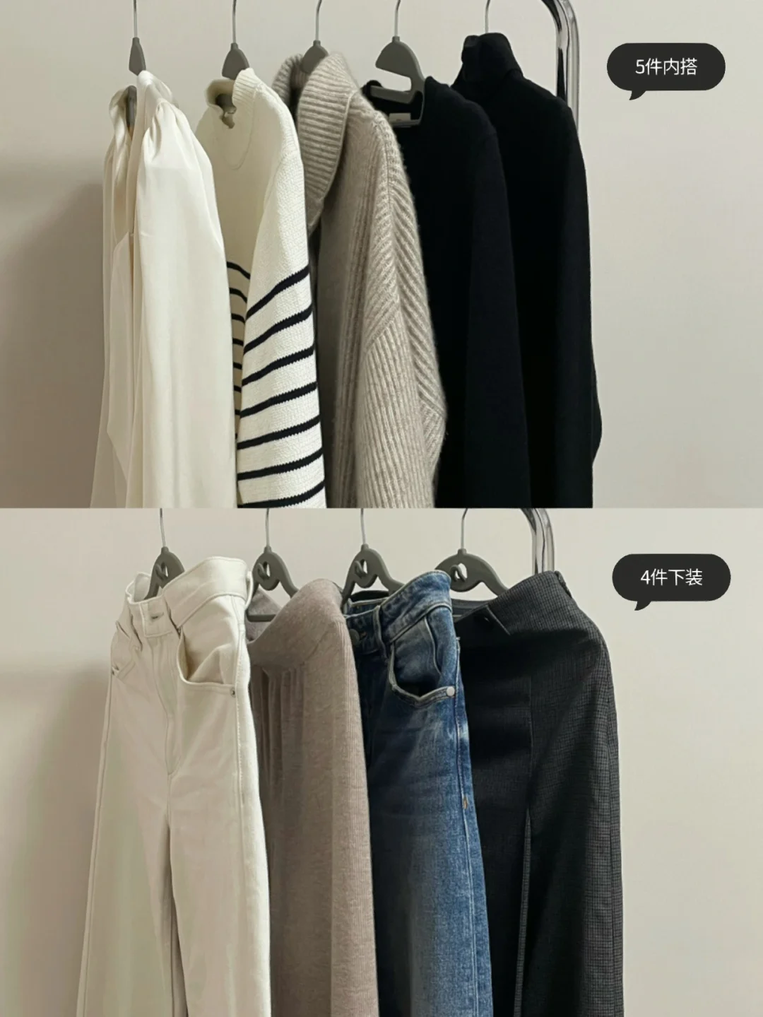 11月穿什么? 4件外套(lr made/无/BSIEE/U) 5件内搭(needshop1/U/之华/之华/无) 4件下装(U/之华/rugosam/U) 降温了加了一件羽绒服 最常穿的大衣依然爱穿 两件羊羔毛肌理外套 毛茸茸带来温暖的感觉 留了稍厚一些的针织或羊绒 下装数量不用多 每件都能搭三件以上上衣 依然是基础的款式和色系 当然也留了一些趣味空间 1件设计款红毛衣 1件人字纹背带裙 普通人的精简衣橱 就是用重复的单品实现多样性穿搭 随手搭配了几组 更多搭配下期见 谢谢你看到这里 ᵕ̈