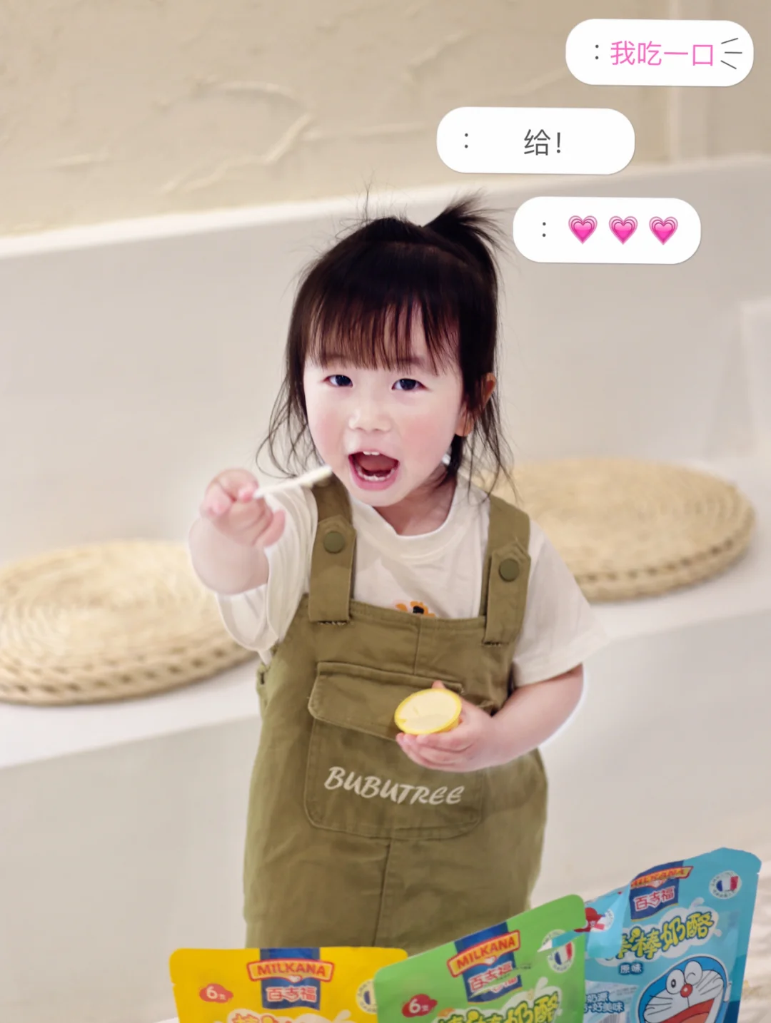 这款奶酪棒里有3⃣️倍牛奶钙,2⃣️倍牛奶蛋白,高钙高蛋白,营养妥妥的足❗️浓缩的🥛牛奶精华才是真硬核营养,又用的是进口奶源,吃起来口感细腻,Cyndi非常心水,每天吵着要吃[色色R][色色R]我都是放到冰箱高处,不然一袋子一天就吃完了~平时带她逛超市只要看到奶酪棒,就自己拿着往购物车🛒里放,🉑️不会亏待自己了😂