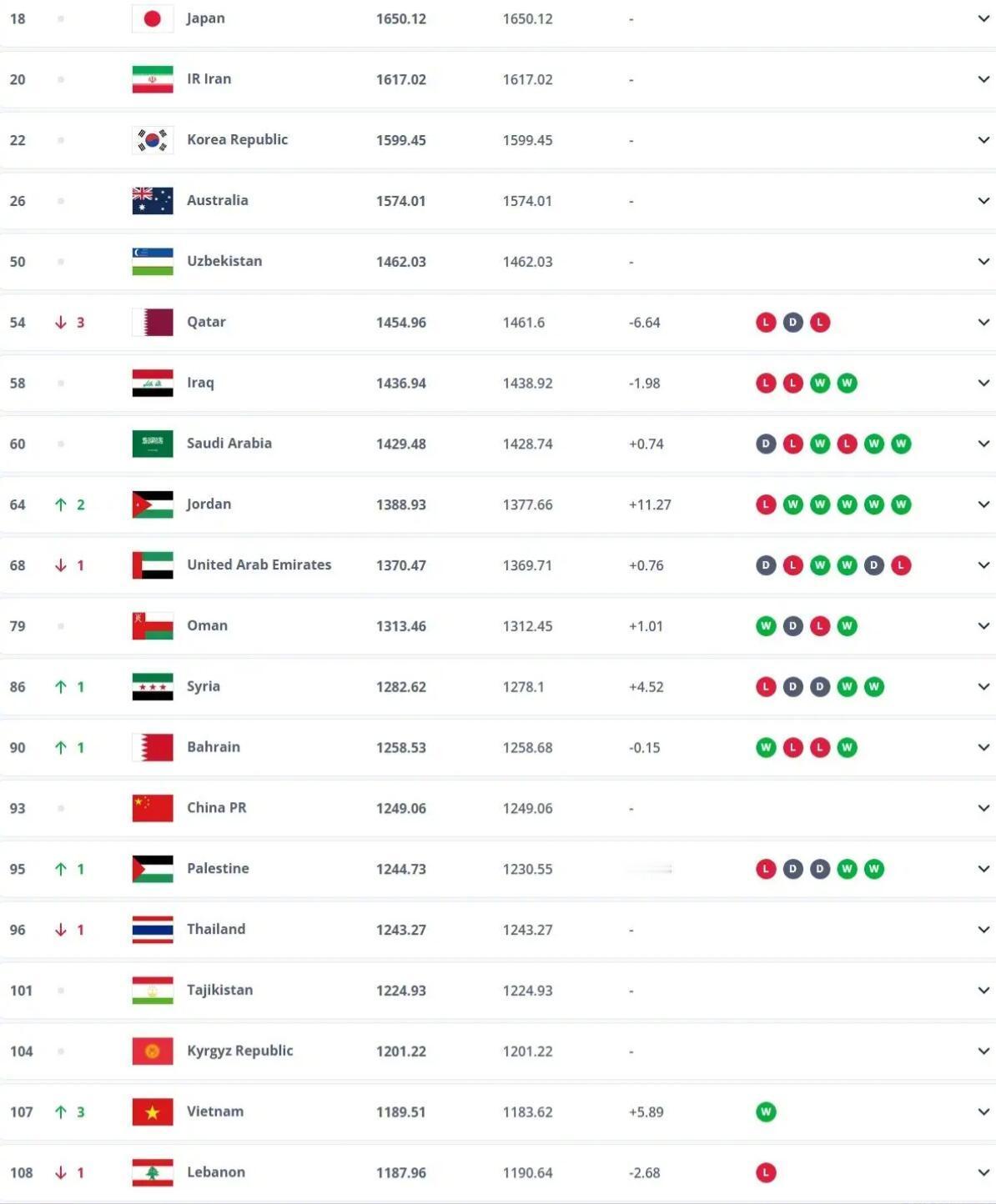国足年终世界排名第93国际足联官方对男子国家队世界排名进行了2025年最后一次更新,由于多数球队没有比赛安排,前33名球队与上次更新时(11月底)一致,排名均未发生变动。其中前十球队排名为:西班牙、阿根廷、法国、英格兰、巴西、葡萄牙、荷兰、比利时、德国、克罗地亚。亚洲方面,中国队位列亚洲第14,世界排名第93。日本继续位列亚洲第1,世界排名为第18,伊朗、韩国、澳大利亚紧随其后。亚洲第4-10名的球队分别是乌兹别克斯坦(50)、卡塔尔(54)、伊拉克(58)、沙特阿拉伯(60)、约旦(64)、阿联酋(68),具体排名情况详见下图。