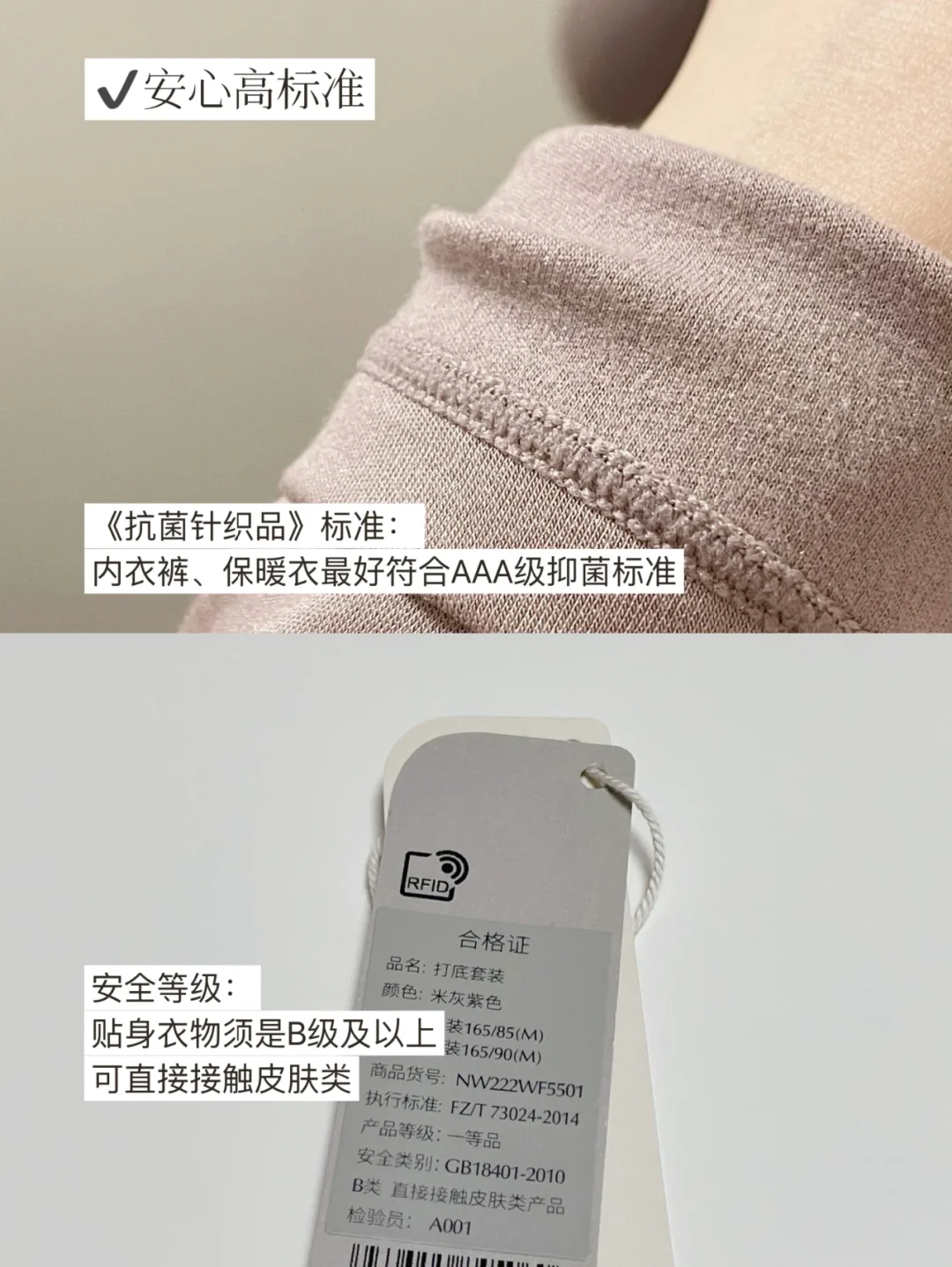 ②《抗菌针织品》标准:内衣裤、贴身保暖衣最好符合AAA级抑菌标准